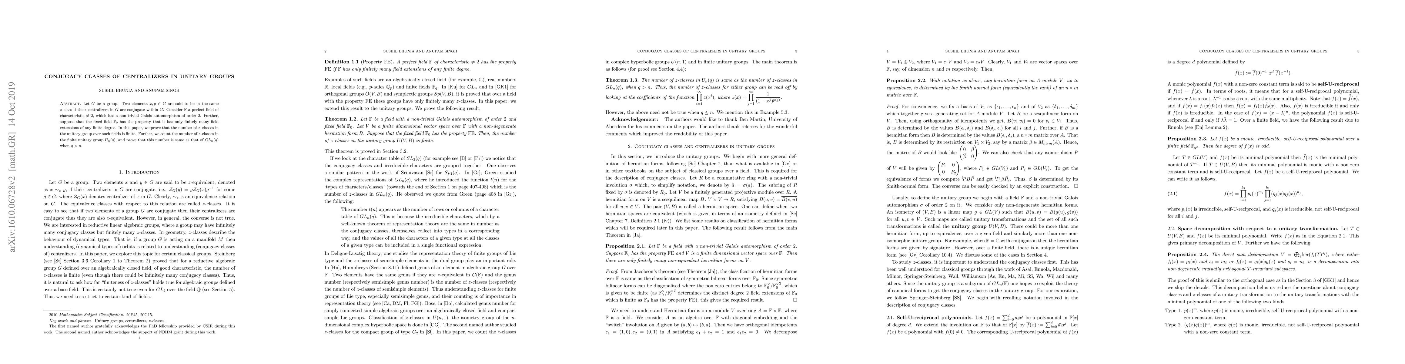 This paper proves that the number of $z$-classes in the unitary group over a perfect field with a non-trivial Galois automorphism of order $2$ is finite. It also counts the $z$-classes in the finite unitary group $U_n(q)$ and shows they match those in $GL_n(q)$ when $q>n$.