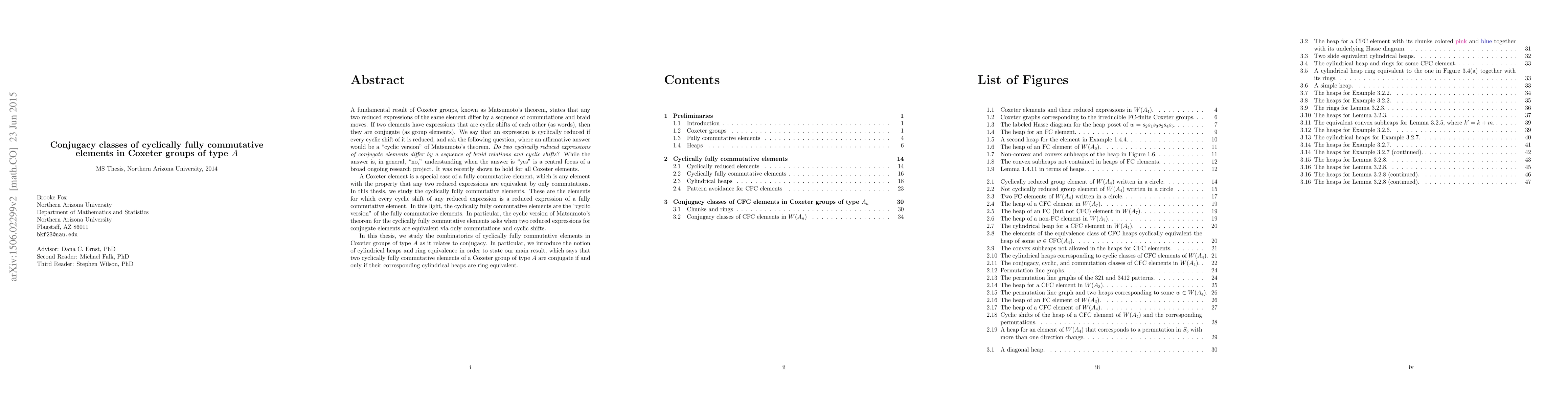 In this thesis, we study the combinatorics of cyclically fully commutative elements in Coxeter groups of type $A$ as it relates to conjugacy. In particular, we introduce the notion of cylindrical heaps and ring equivalence in order to state our main result, which says that two cyclically fully commutative elements of a Coxeter group of type $A$ are conjugate if and only if their corresponding cylindrical heaps are ring equivalent.
