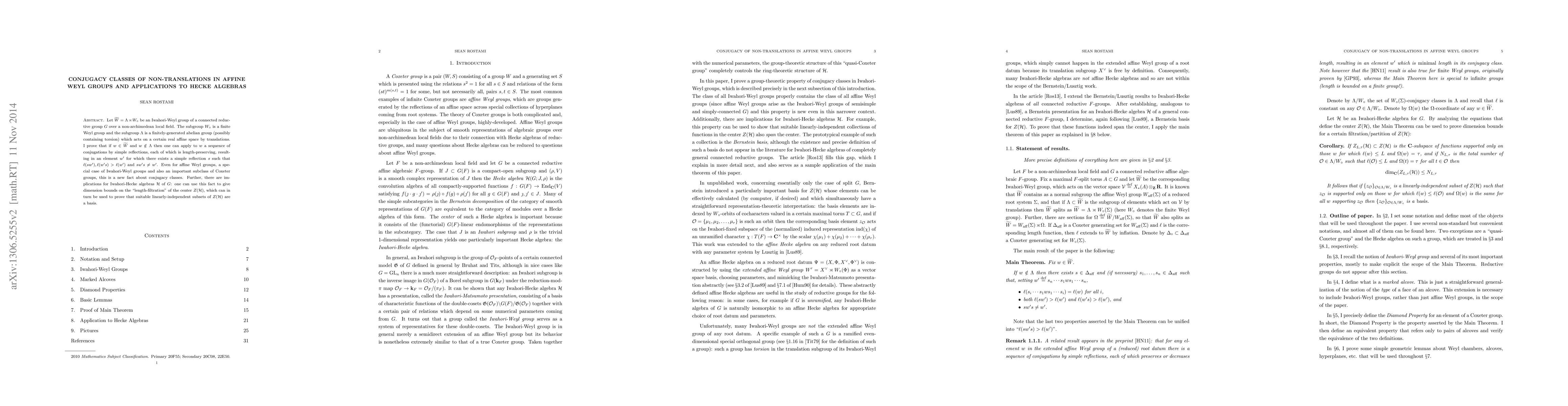 This paper proves that non-translation elements in affine Weyl groups can be conjugated to a form where their length is reduced by a simple reflection, providing new insights into conjugacy classes. The results also yield dimension bounds for the length-filtration of the center of Iwahori-Hecke algebras, establishing linearly-independent subsets as a basis.
