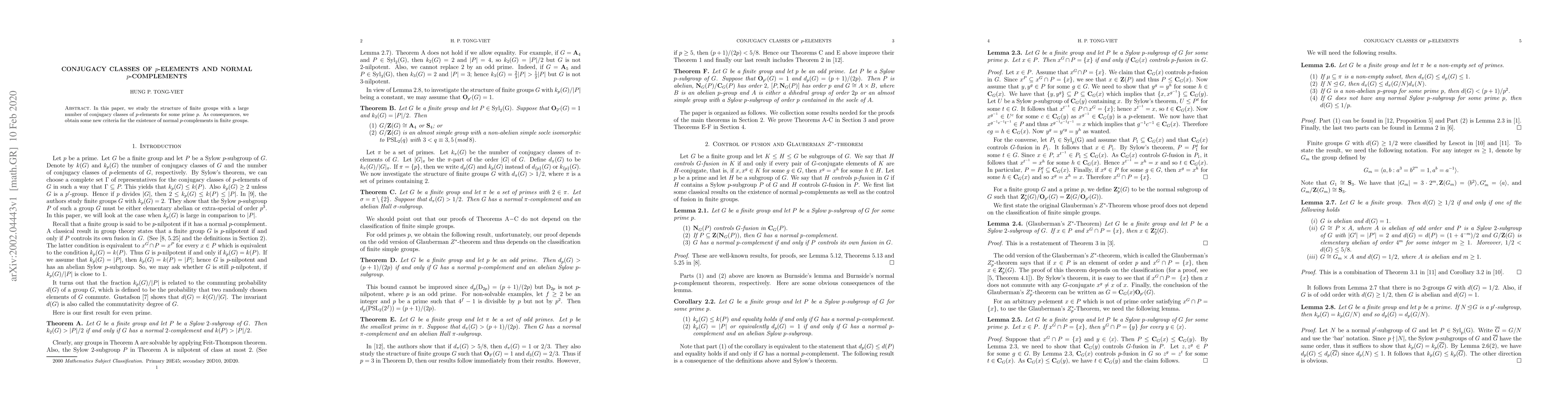 This paper investigates the structure of finite groups characterized by a high number of conjugacy classes of $p$-elements for a given prime $p$, leading to new criteria for the existence of normal $p$-complements within these groups.