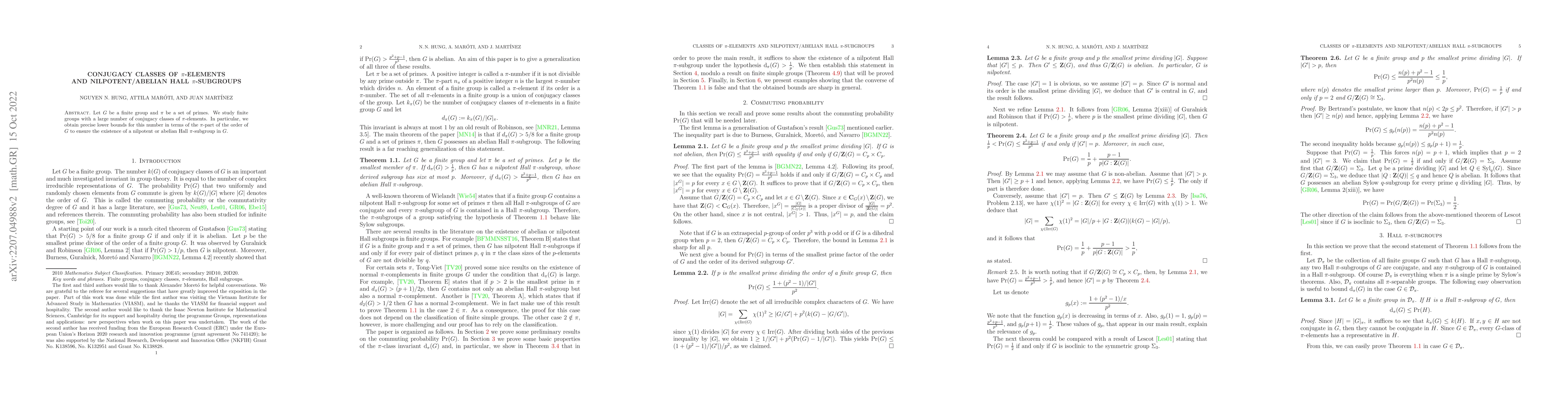 This paper investigates the relationship between the number of conjugacy classes of $\pi$-elements in a finite group $G$ and the existence of nilpotent or abelian Hall $\pi$-subgroups, providing precise lower bounds based on the $\pi$-part of the order of $G$.