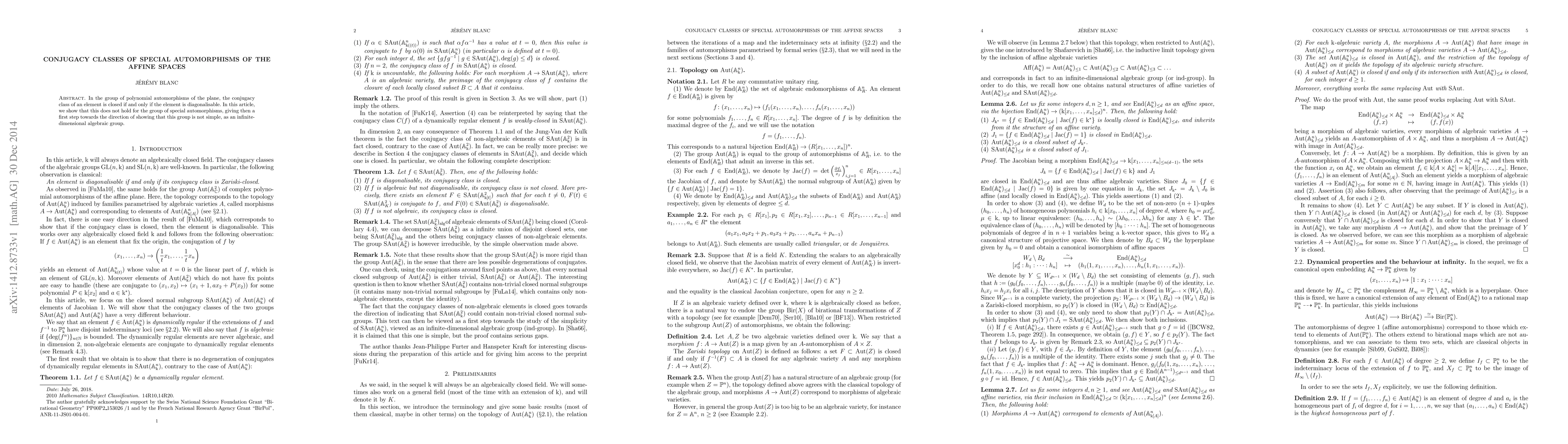 This paper investigates the conjugacy classes of special automorphisms in affine spaces, demonstrating that the property of closed conjugacy classes, valid for diagonalizable polynomial automorphisms, does not extend to special automorphisms, hinting at the non-simplicity of the infinite-dimensional algebraic group of these automorphisms.