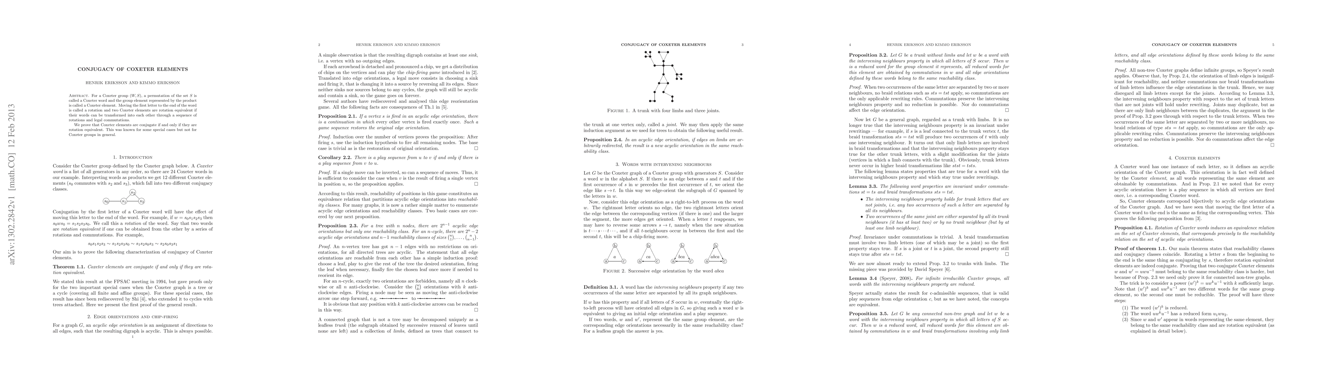 Researchers prove that Coxeter elements in a group are conjugate if and only if they are rotation equivalent, resolving a known limitation for general Coxeter groups.