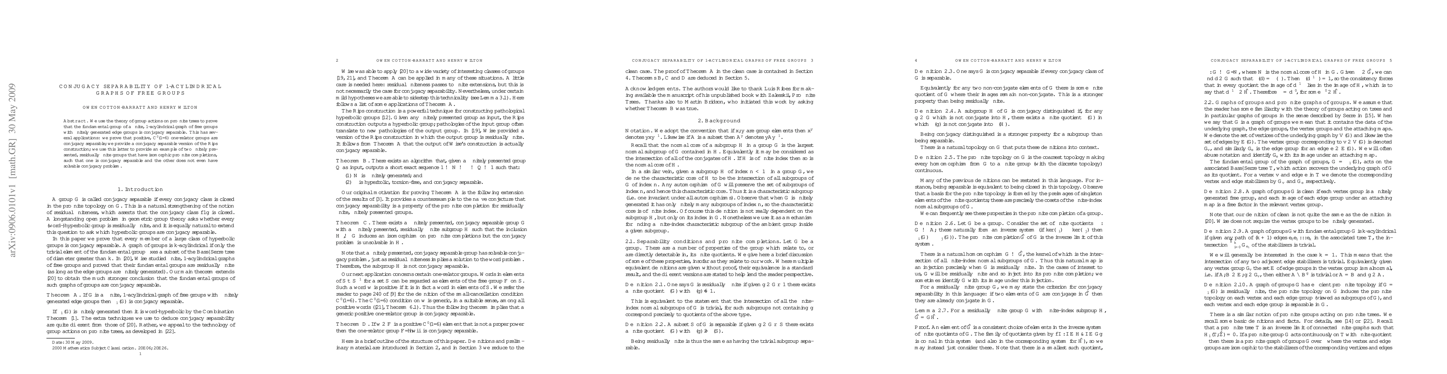 We use the theory of group actions on profinite trees to prove that the fundamental group of a finite, 1-acylindrical graph of free groups with finitely generated edge groups is conjugacy separable. This has several applications: we prove that positive, $C'(1/6)$ one-relator groups are conjugacy separable; we provide a conjugacy separable version of the Rips construction; we use this latter to provide an example of two finitely presented, residually finite groups that have isomorphic profinite completions, such that one is conjugacy separable and the other does not even have solvable conjugacy problem.