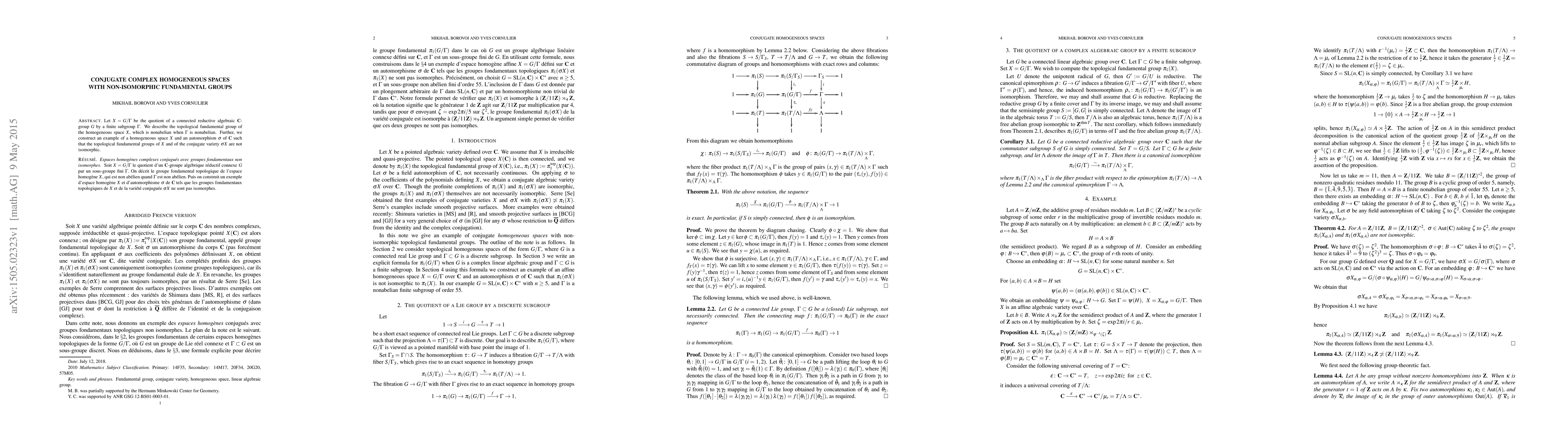 Let X=G/H be the quotient of a connected reductive algebraic C-group G defined over the field of complex numbers C by a finite subgroup H. We describe the topological fundamental group of the homogeneous space X, which is nonabelian when H is nonabelian. Further, we construct an example of a homogeneous space X and an automorphism s of C such that the topological fundamental groups of X and of the conjugate variety sX are not isomorphic.