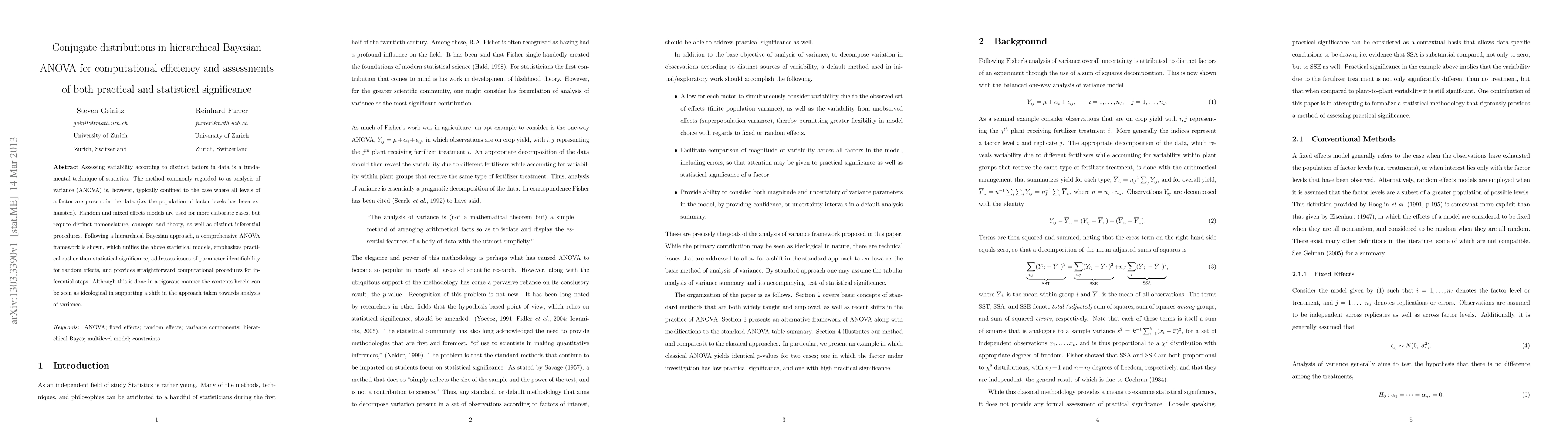 Assessing variability according to distinct factors in data is a fundamental technique of statistics. The method commonly regarded to as analysis of variance (ANOVA) is, however, typically confined to the case where all levels of a factor are present in the data (i.e. the population of factor levels has been exhausted). Random and mixed effects models are used for more elaborate cases, but require distinct nomenclature, concepts and theory, as well as distinct inferential procedures. Following a hierarchical Bayesian approach, a comprehensive ANOVA framework is shown, which unifies the above statistical models, emphasizes practical rather than statistical significance, addresses issues of parameter identifiability for random effects, and provides straightforward computational procedures for inferential steps. Although this is done in a rigorous manner the contents herein can be seen as ideological in supporting a shift in the approach taken towards analysis of variance.