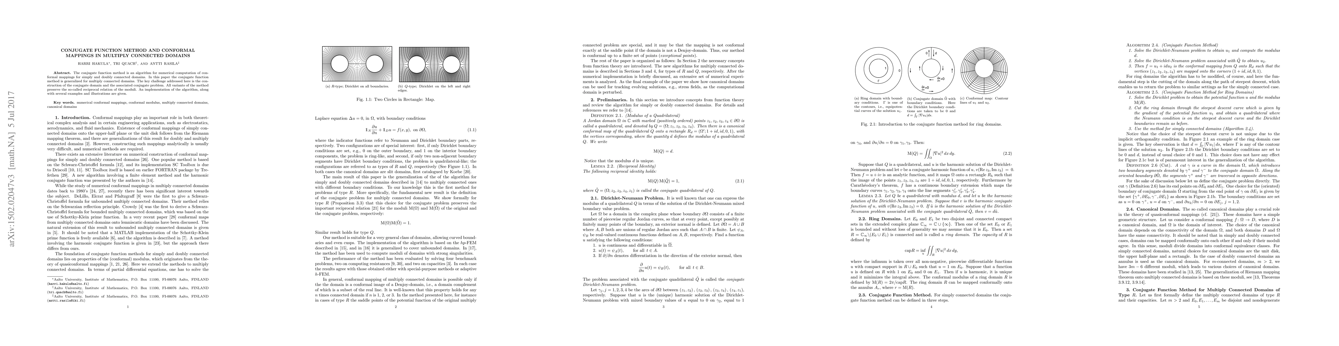 This paper generalizes the conjugate function method for computing conformal mappings in multiply connected domains, addressing the construction of the conjugate domain and maintaining the reciprocal relation of moduli. The algorithm's implementation is illustrated with examples.