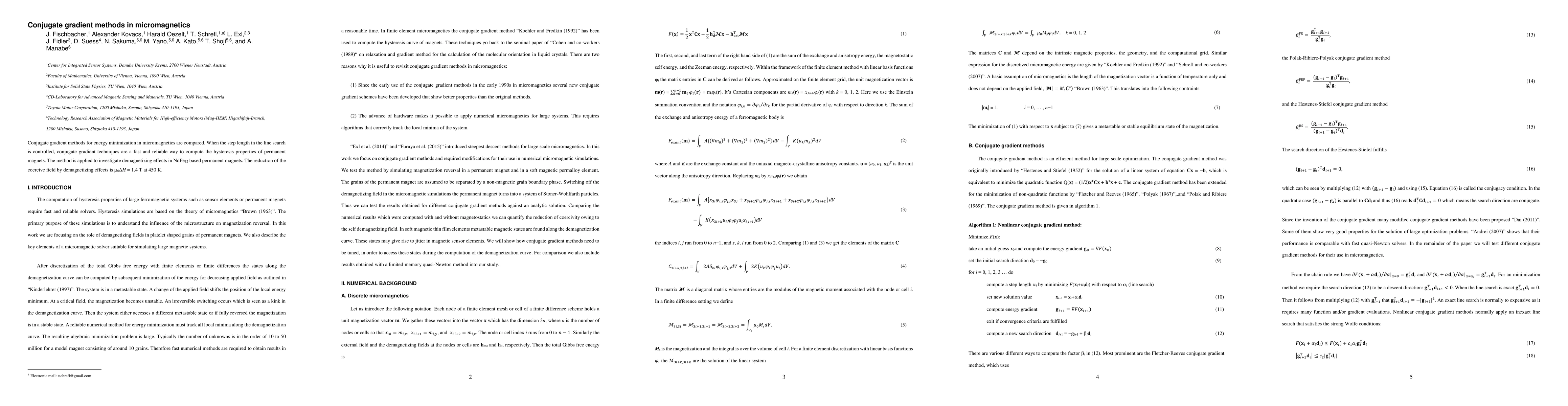 This paper compares conjugate gradient methods for energy minimization in micromagnetics, demonstrating their efficiency in computing hysteresis properties of permanent magnets. The study applies these methods to NdFe12 magnets, finding a coercive field reduction of 1.4 T due to demagnetizing effects at 450 K.