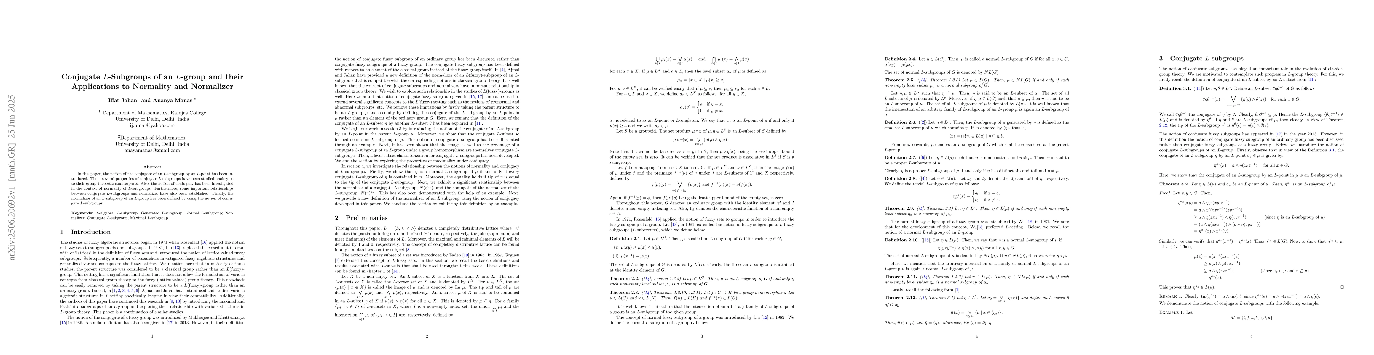 In this paper, the notion of the conjugate of an L-subgroup by an L-point has been introduced. Then, several properties of conjugate L-subgroups have been studied analogous to their group-theoretic counterparts. Also, the notion of conjugacy has been investigated in the context of normality of L-subgroups. Furthermore, some important relationships between conjugate L-subgroups and normalizer have also been established. Finally, the normalizer of an L-subgroup of an L-group has been defined by using the notion of conjugate L-subgroups.