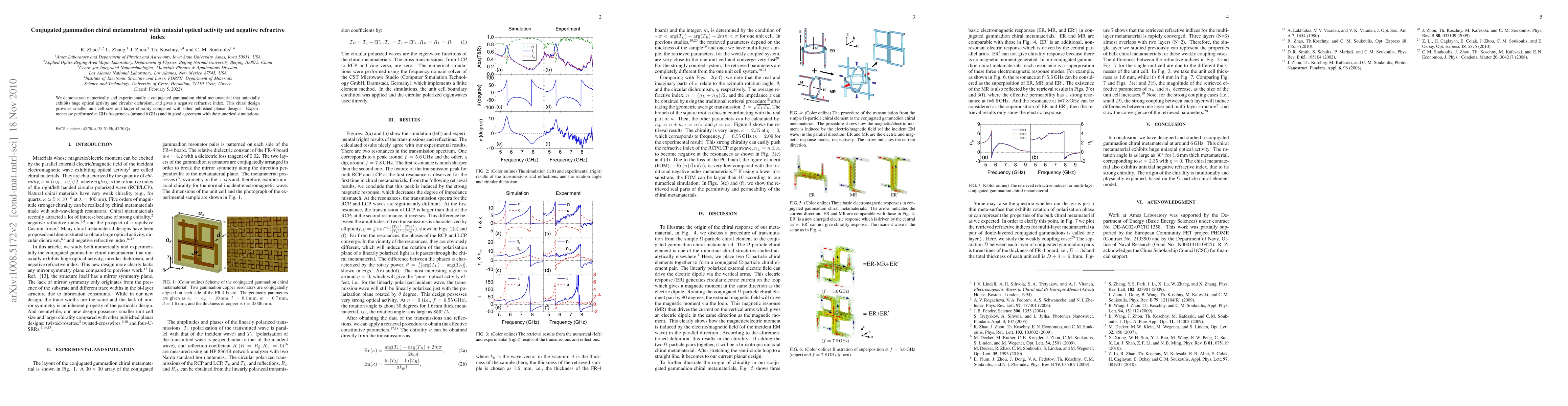 A conjugated gammadion chiral metamaterial was designed and fabricated using a combination of theoretical modeling and experimental techniques.