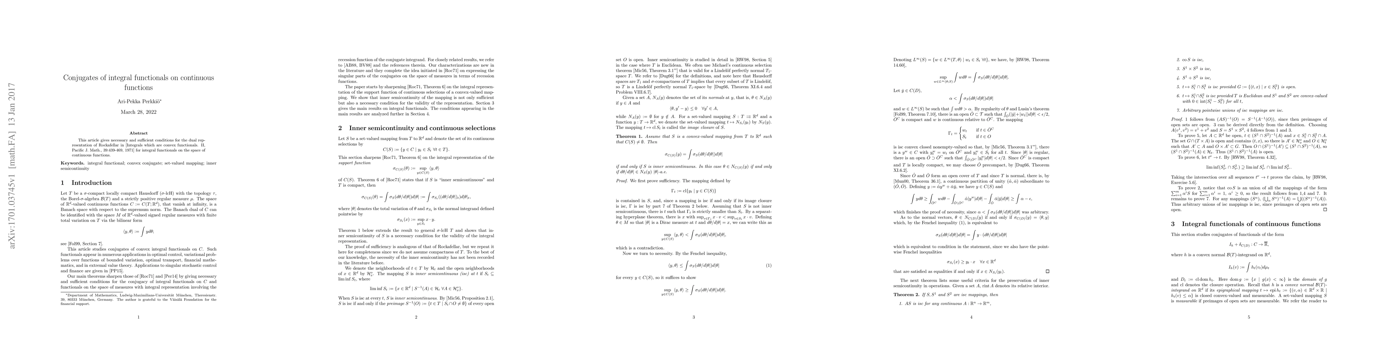 Summary: The paper establishes necessary and sufficient conditions for the dual representation of Rockafellar's integral functionals on continuous functions, expanding on his earlier work from 1971. This provides a complete framework for understanding the dual structure of such functionals.