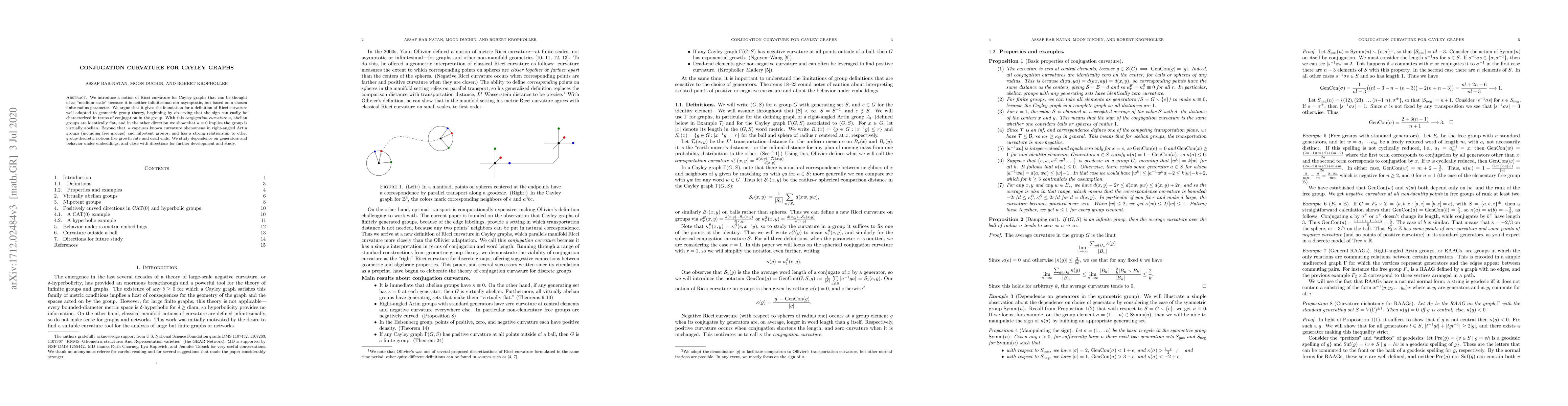 We introduce a notion of Ricci curvature for Cayley graphs that can be thought of as "medium-scale" because it is neither infinitesimal nor asymptotic, but based on a chosen finite radius parameter. We argue that it gives the foundation for a definition of Ricci curvature well adapted to geometric group theory, beginning by observing that the sign can easily be characterized in terms of conjugation in the group. With this conjugation curvature $\kappa$, abelian groups are identically flat, and in the other direction we show that $\kappa\equiv 0$ implies the group is virtually abelian. Beyond that, $\kappa$ captures known curvature phenomena in right-angled Artin groups (including free groups) and nilpotent groups, and has a strong relationship to other group-theoretic notions like growth rate and dead ends. We study dependence on generators and behavior under embeddings, and close with directions for further development and study.