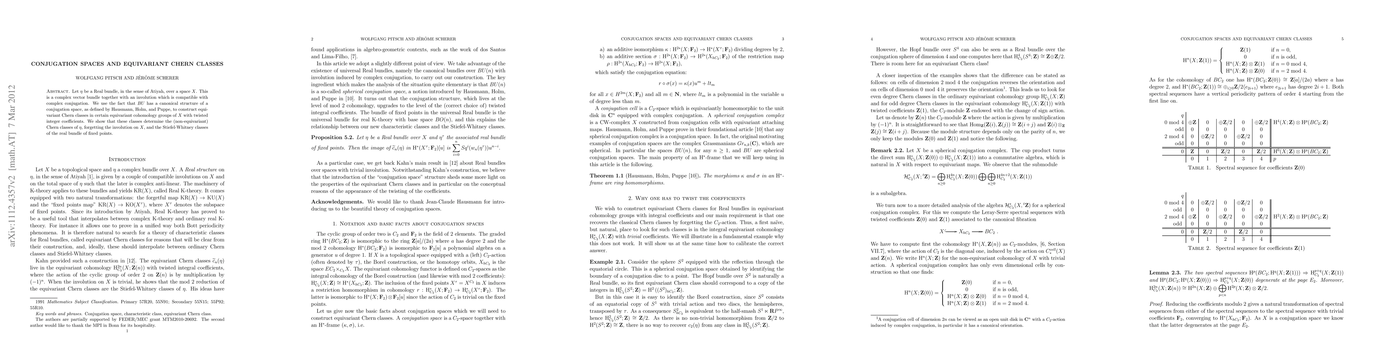 This paper constructs equivariant Chern classes for real bundles over a space X, leveraging the structure of conjugation spaces on BU to determine the non-equivariant Chern classes and Stiefel-Whitney classes of the real bundle of fixed points.