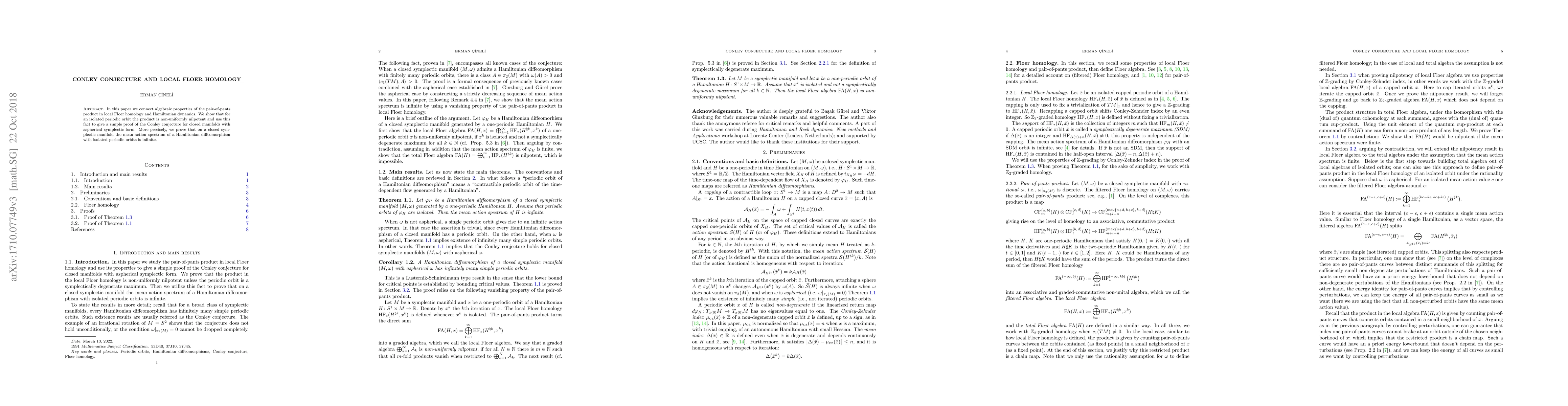 In this paper we connect algebraic properties of the pair-of-pants product in local Floer homology and Hamiltonian dynamics. We show that for an isolated periodic orbit the product is non-uniformly nilpotent and use this fact to give a simple proof of the Conley conjecture for closed manifolds with aspherical symplectic form. More precisely, we prove that on a closed symplectic manifold the mean action spectrum of a Hamiltonian diffeomorphism with isolated periodic orbits is infinite.