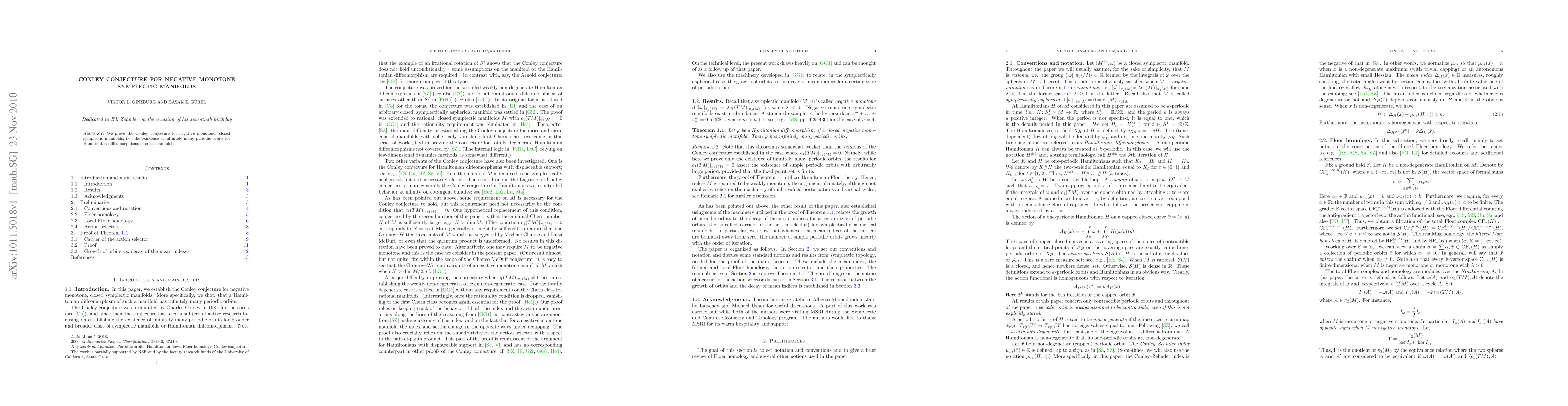 Researchers prove the Conley conjecture for negative monotone symplectic manifolds, showing that they have infinitely many periodic orbits for Hamiltonian diffeomorphisms.
