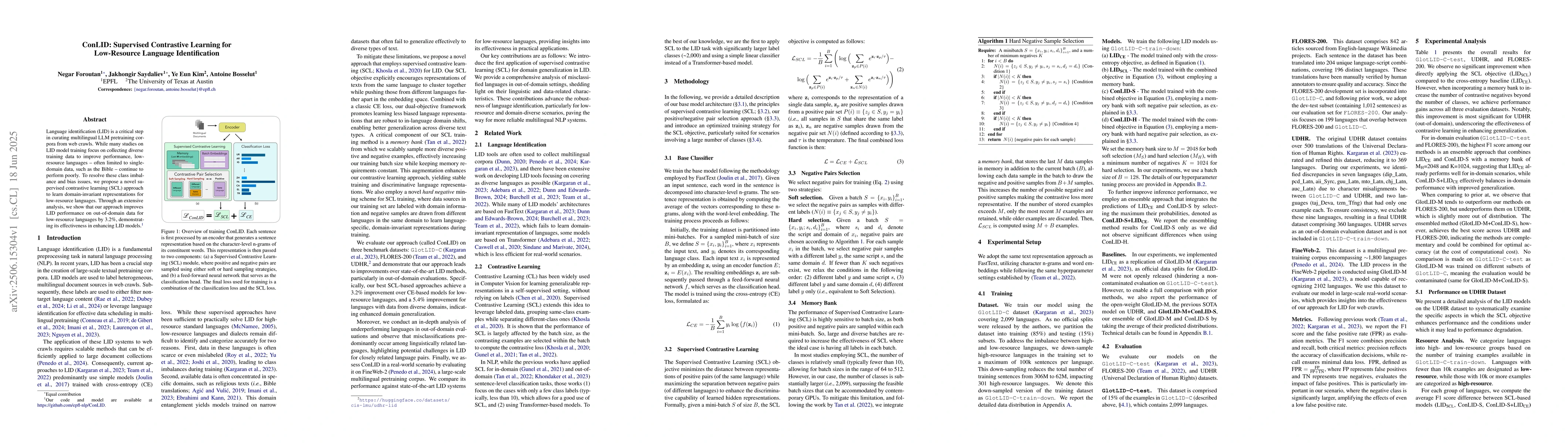 The paper introduces ConLID, a supervised contrastive learning method to enhance language identification (LID) for low-resource languages. By learning domain-invariant representations, ConLID improves out-of-domain LID performance for these languages by 3.2%, addressing class imbalance and bias issues in existing models.
