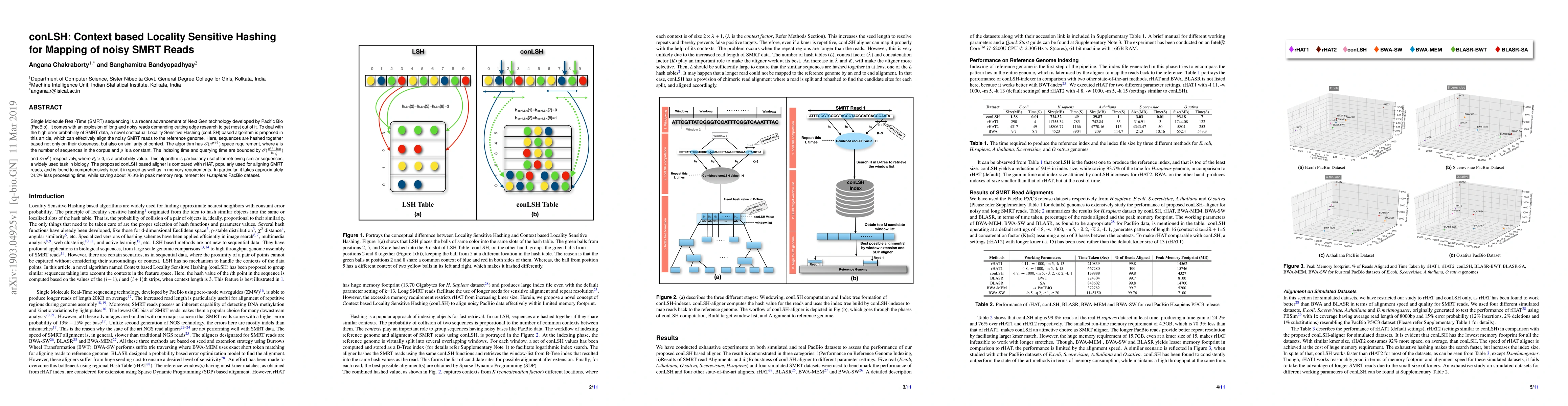 Single Molecule Real-Time (SMRT) sequencing is a recent advancement of Next Gen technology developed by Pacific Bio (PacBio). It comes with an explosion of long and noisy reads demanding cutting edge research to get most out of it. To deal with the high error probability of SMRT data, a novel contextual Locality Sensitive Hashing (conLSH) based algorithm is proposed in this article, which can effectively align the noisy SMRT reads to the reference genome. Here, sequences are hashed together based not only on their closeness, but also on similarity of context. The algorithm has $\mathcal{O}(n^{\rho+1})$ space requirement, where $n$ is the number of sequences in the corpus and $\rho$ is a constant. The indexing time and querying time are bounded by $\mathcal{O}( \frac{n^{\rho+1} \cdot \ln n}{\ln \frac{1}{P_2}})$ and $\mathcal{O}(n^\rho)$ respectively, where $P_2 > 0$, is a probability value. This algorithm is particularly useful for retrieving similar sequences, a widely used task in biology. The proposed conLSH based aligner is compared with rHAT, popularly used for aligning SMRT reads, and is found to comprehensively beat it in speed as well as in memory requirements. In particular, it takes approximately $24.2\%$ less processing time, while saving about $70.3\%$ in peak memory requirement for H.sapiens PacBio dataset.