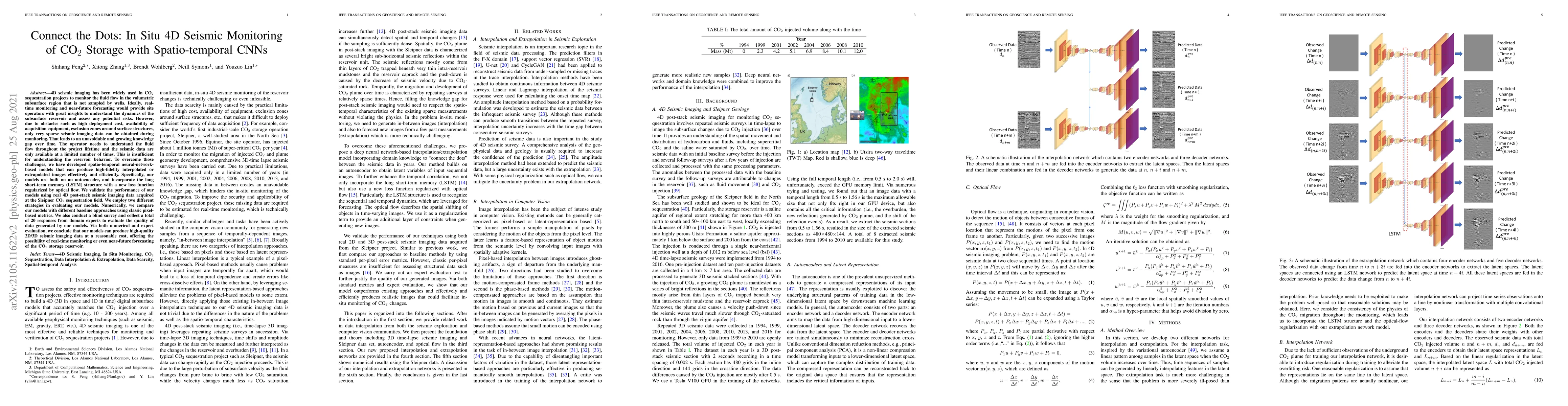 4D seismic imaging has been widely used in CO$_2$ sequestration projects to monitor the fluid flow in the volumetric subsurface region that is not sampled by wells. Ideally, real-time monitoring and near-future forecasting would provide site operators with great insights to understand the dynamics of the subsurface reservoir and assess any potential risks. However, due to obstacles such as high deployment cost, availability of acquisition equipment, exclusion zones around surface structures, only very sparse seismic imaging data can be obtained during monitoring. That leads to an unavoidable and growing knowledge gap over time. The operator needs to understand the fluid flow throughout the project lifetime and the seismic data are only available at a limited number of times. This is insufficient for understanding the reservoir behavior. To overcome those challenges, we have developed spatio-temporal neural-network-based models that can produce high-fidelity interpolated or extrapolated images effectively and efficiently. Specifically, our models are built on an autoencoder, and incorporate the long short-term memory (LSTM) structure with a new loss function regularized by optical flow. We validate the performance of our models using real 4D post-stack seismic imaging data acquired at the Sleipner CO$_2$ sequestration field. We employ two different strategies in evaluating our models. Numerically, we compare our models with different baseline approaches using classic pixel-based metrics. We also conduct a blind survey and collect a total of 20 responses from domain experts to evaluate the quality of data generated by our models. Via both numerical and expert evaluation, we conclude that our models can produce high-quality 2D/3D seismic imaging data at a reasonable cost, offering the possibility of real-time monitoring or even near-future forecasting of the CO$_2$ storage reservoir.
