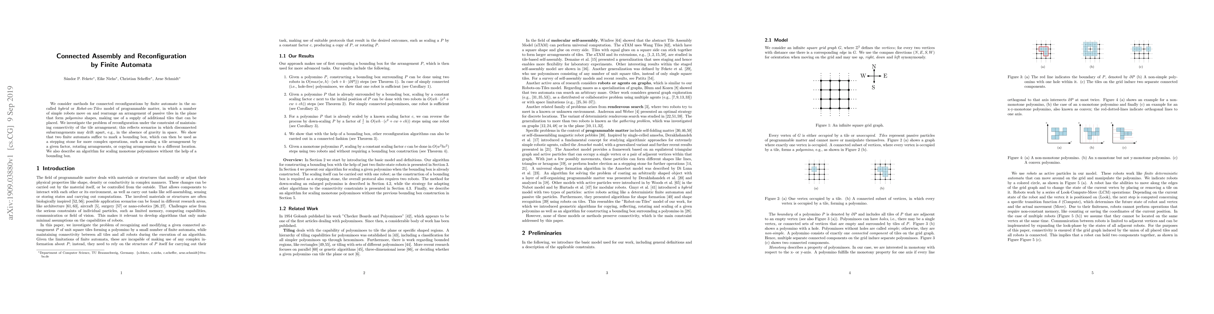 Researchers develop methods for connected reconfigurations using finite automata in a programmable matter model, enabling operations like scaling, rotation, and copying of tile arrangements while maintaining connectivity.