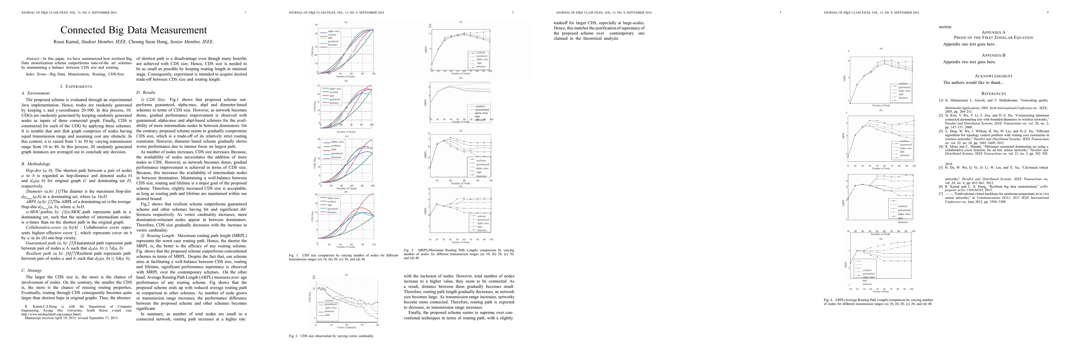 In this paper, we have summarized how resilient Big Data monetization scheme outperforms state-of-the art schemes by maintaining a balance between CDS size and routing.