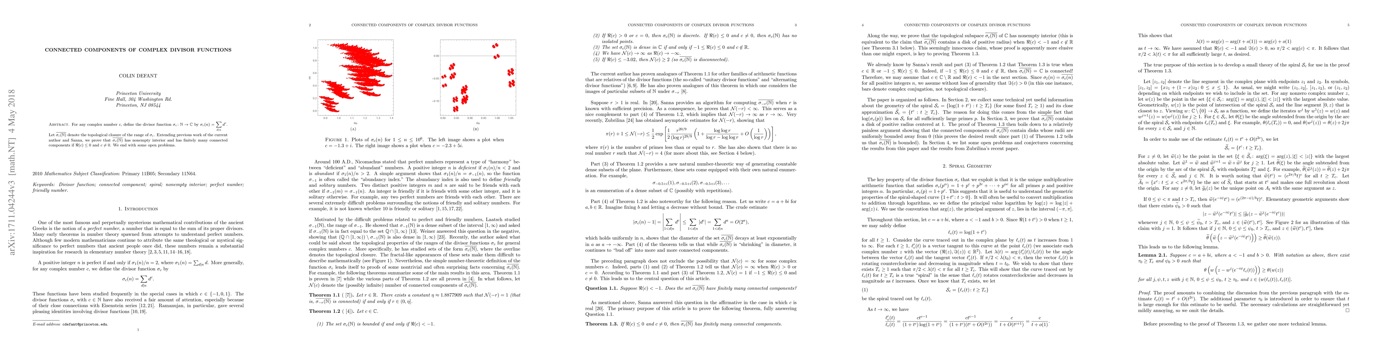 For any complex number $c$, define the divisor function $\sigma_c\colon\mathbb N\to\mathbb C$ by $\displaystyle\sigma_c(n)=\sum_{d\mid n}d^c$. Let $\overline{\sigma_c(\mathbb N)}$ denote the topological closure of the range of $\sigma_c$. Extending previous work of the current author and Sanna, we prove that $\overline{\sigma_c(\mathbb N)}$ has nonempty interior and has finitely many connected components if $\Re(c)\leq 0$ and $c\neq 0$. We end with some open problems.