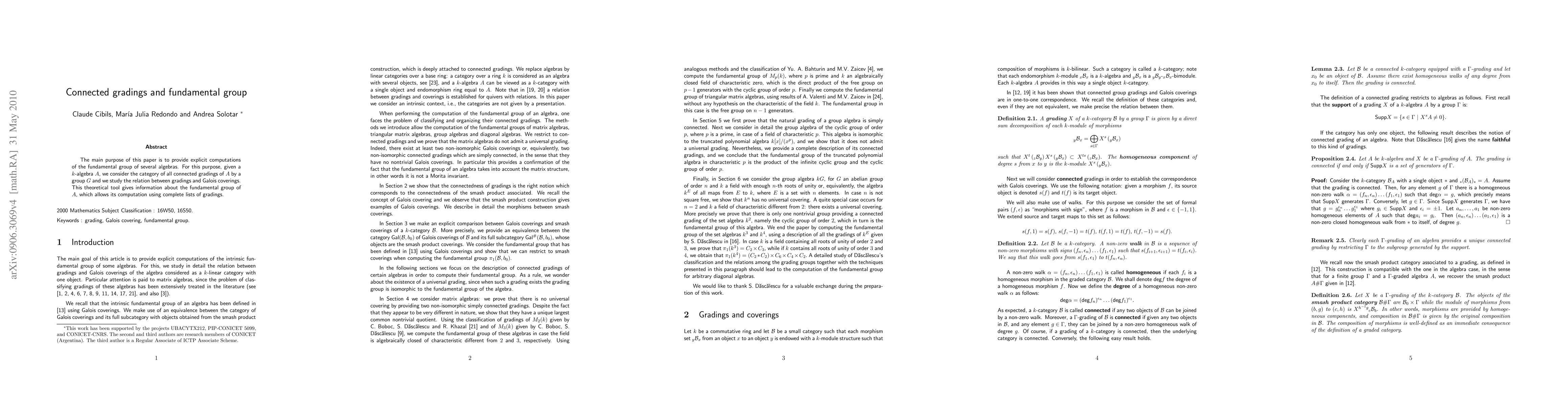 This paper computes the fundamental group of various algebras by exploring connected gradings by a group $G$ and their relation to Galois coverings, providing a method to determine the group using complete grading lists.