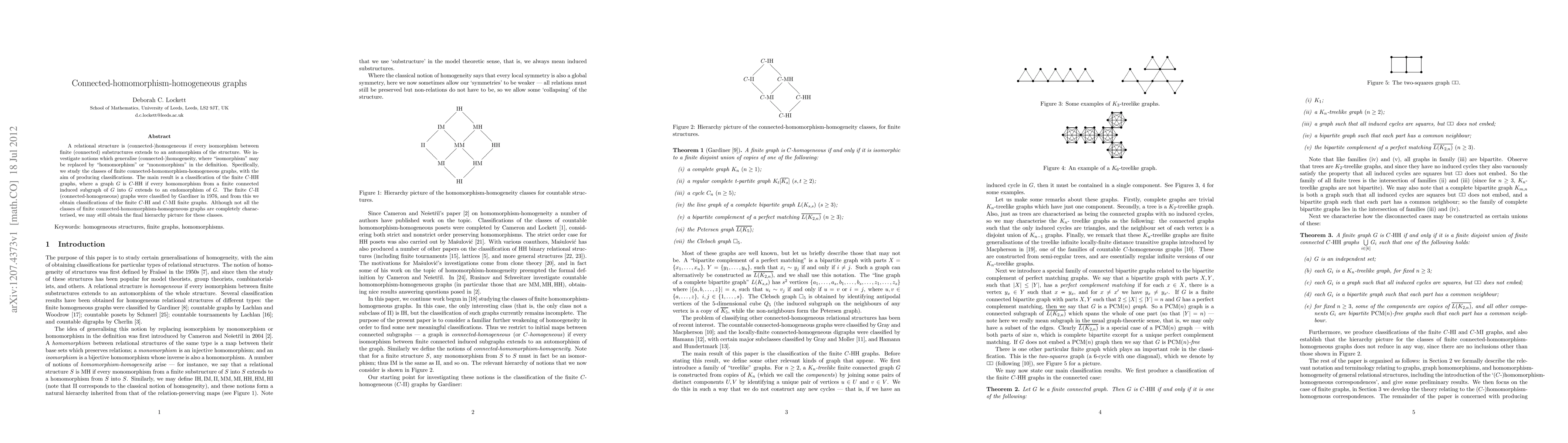 This paper classifies finite connected-homomorphism-homogeneous (C-HH) graphs, where every homomorphism from a finite connected induced subgraph extends to an endomorphism. It builds on Gardiner's 1976 classification of connected-homogeneous graphs to derive classifications for connected-homomorphism-induced (C-HI) and connected-monomorphism-induced (C-MI) graphs, providing a hierarchy of these graph classes.