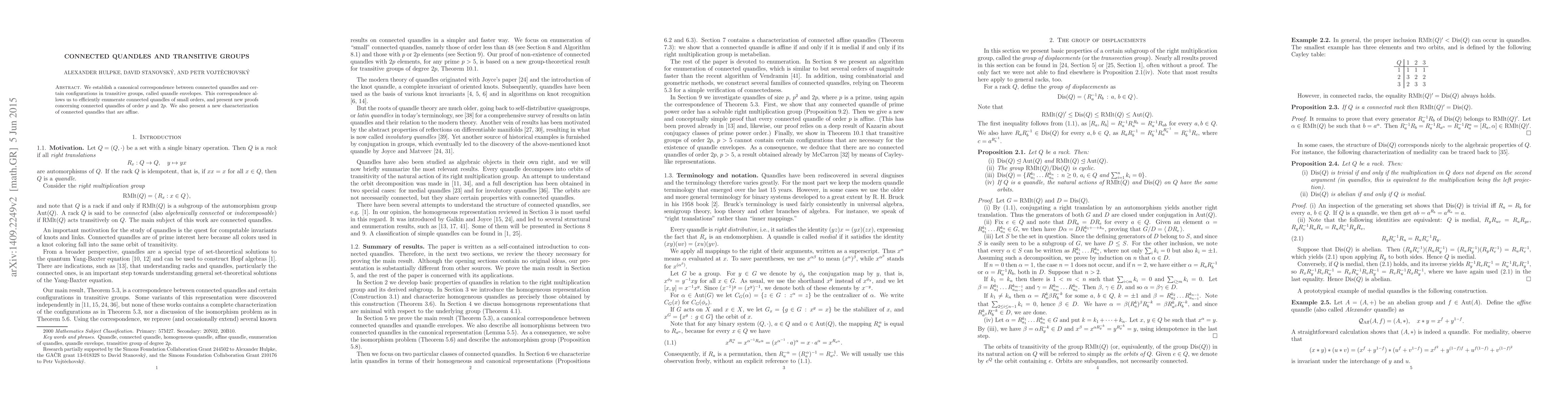 Summary: This paper establishes a connection between connected quandles and transitive group configurations known as quandle envelopes, enabling effective enumeration and new proofs for quandles of specific orders, along with a new characterization of affine connected quandles.