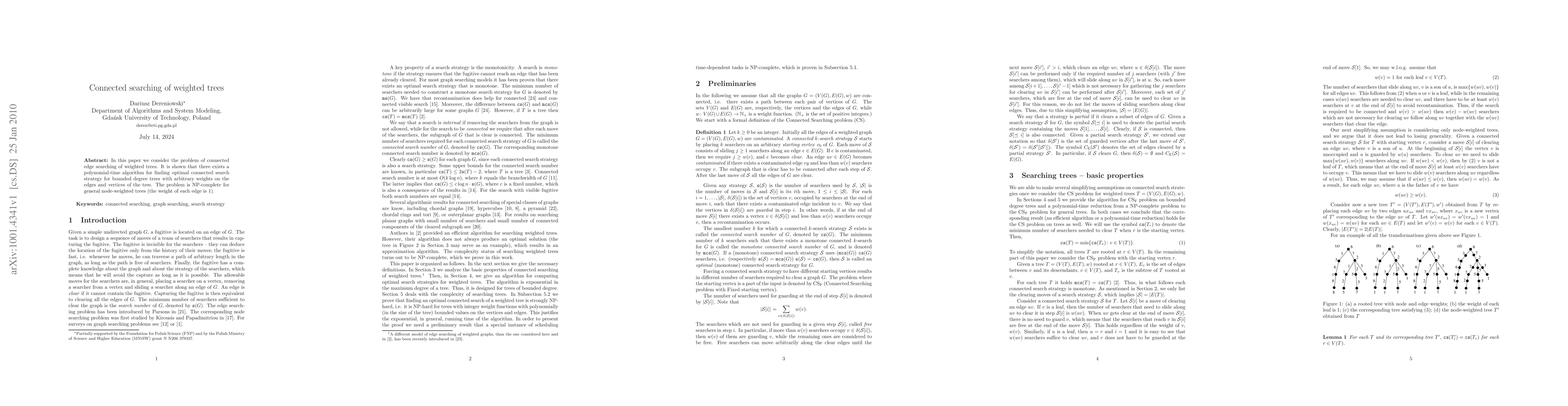 This paper presents a polynomial-time algorithm for finding optimal connected search strategies in bounded degree trees with arbitrary edge weights, while demonstrating that the problem becomes NP-complete for general node-weighted trees with uniform edge weights.