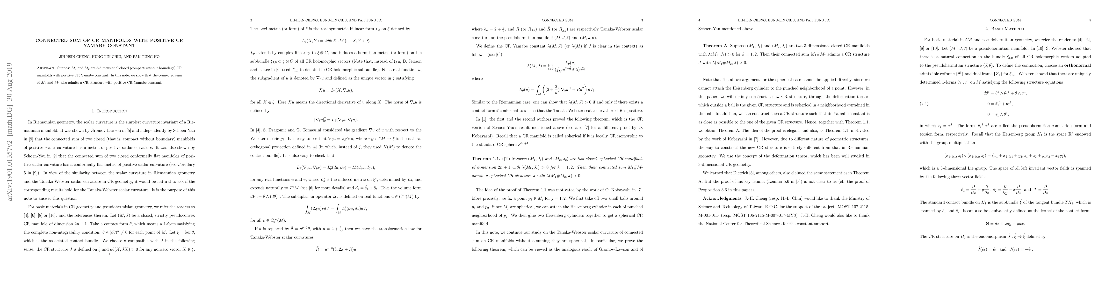 Suppose $M_{1}$ and $M_{2}$ are $3$-dimensional closed (compact without boundary) CR manifolds with positive CR Yamabe constant. In this note, we show that the connected sum of $M_{1}$ and $M_{2}$ also admits a CR structure with positive CR Yamabe constant.