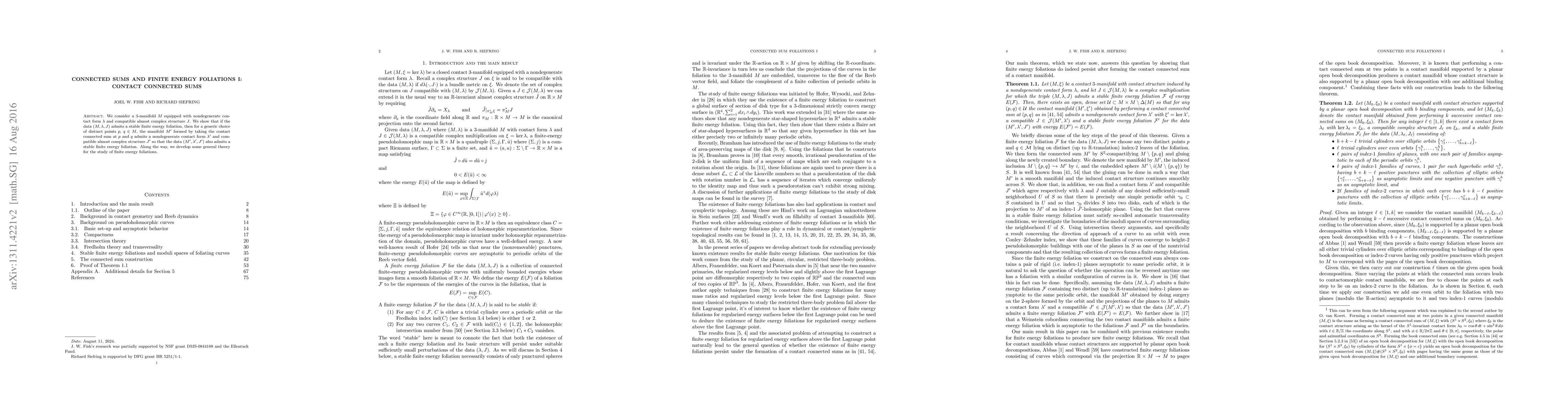 A 3-manifold with a stable finite energy foliation can be modified to form a connected sum, preserving the contact structure, almost complex structure, and admitting another stable finite energy foliation for generic point pairs.