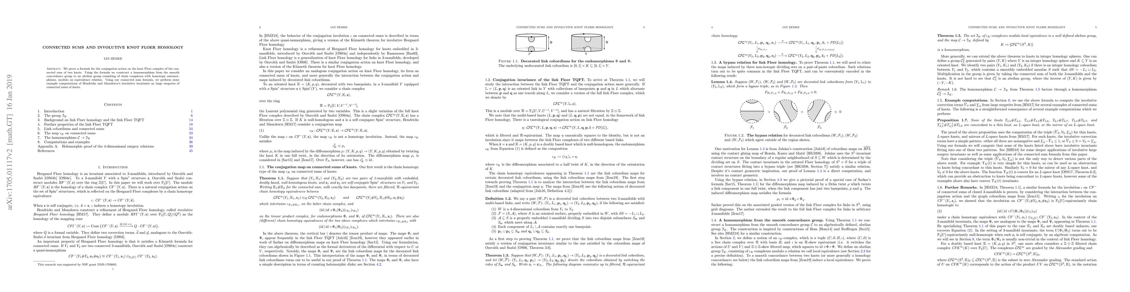 The paper proves a formula for the conjugation action in knot Floer homology for connected sums of knots, and constructs a homomorphism linking the smooth concordance group to a group of homotopy automorphisms. It also demonstrates computations of involutive invariants on large surgeries of connected sums using the established formula.