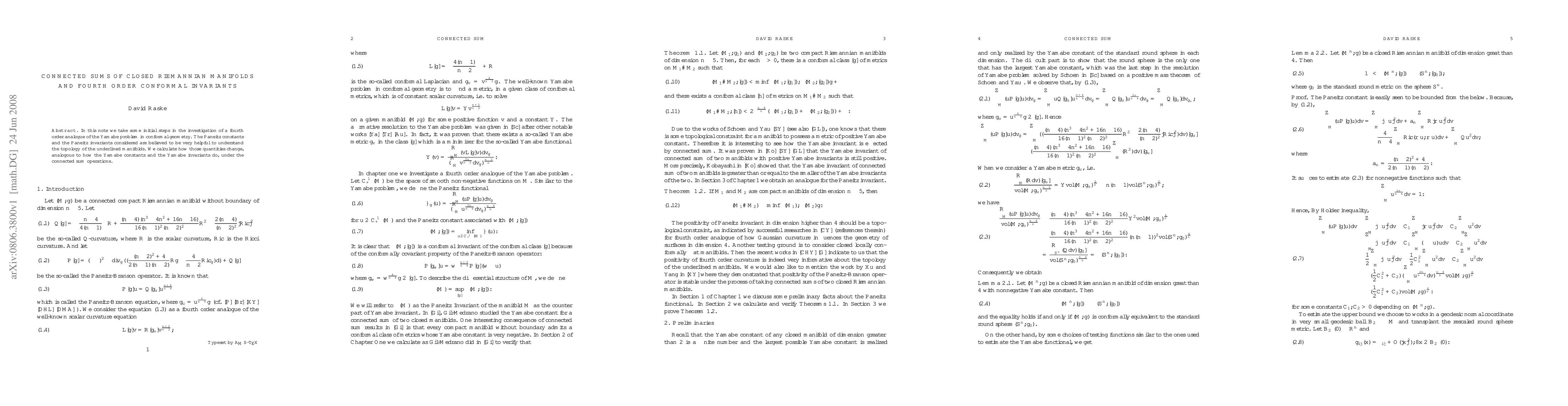 In this note we take some initial steps in the investigation of a fourth order analogue of the Yamabe problem in conformal geometry. The Paneitz constants and the Paneitz invariants considered are believed to be very helpful to understand the topology of the underlined manifolds. We calculate how those quantities change, analogous to how the Yamabe constants and the Yamabe invariants do, under the connected sum operations.