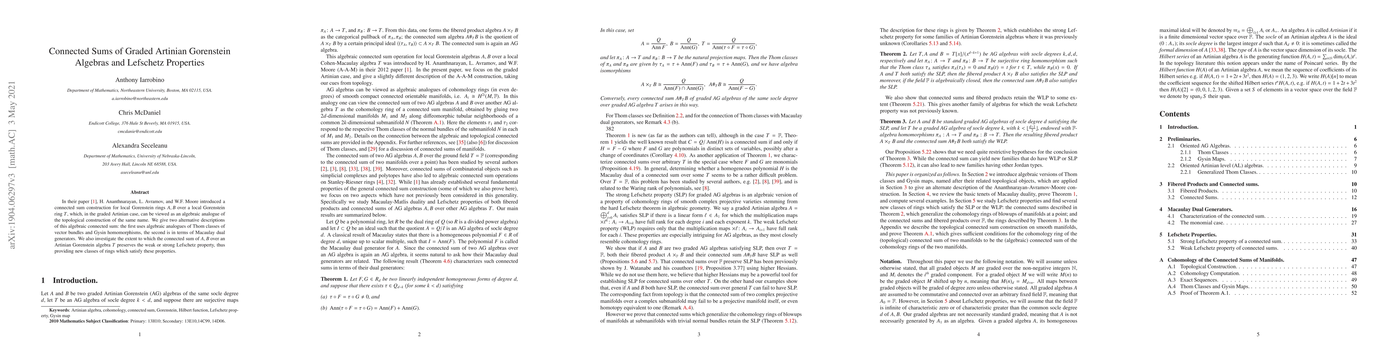 This paper explores the connected sum construction for graded Artinian Gorenstein algebras, offering two algebraic descriptions and investigating how this construction preserves the weak or strong Lefschetz properties. It provides new classes of rings with these Lefschetz properties.