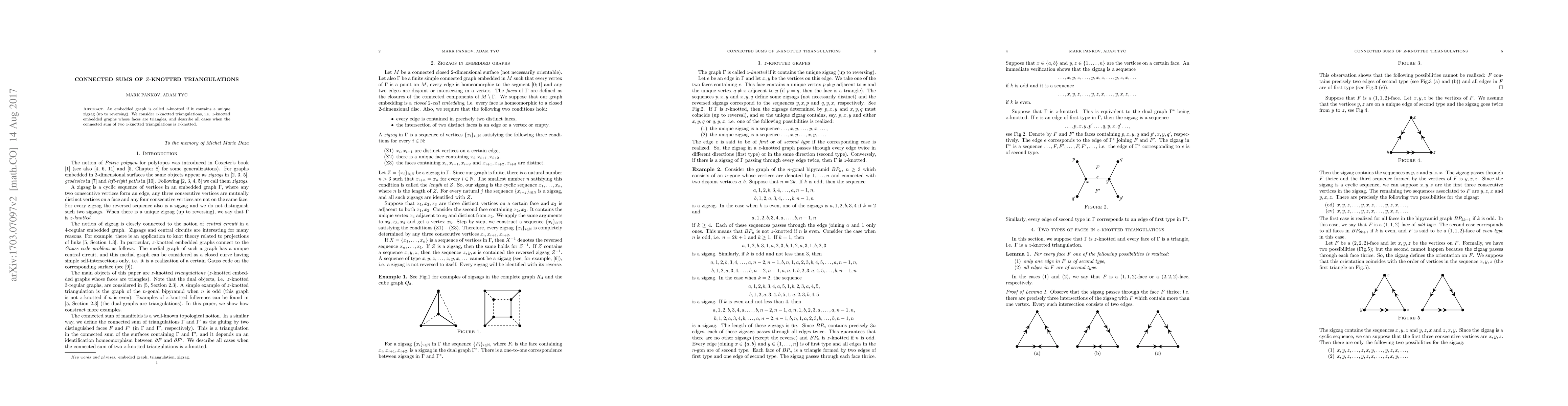 This paper investigates $z$-knotted triangulations, embedded graphs with unique zigzags, and determines when the connected sum of two such triangulations remains $z$-knotted. It provides a comprehensive classification of these cases.
