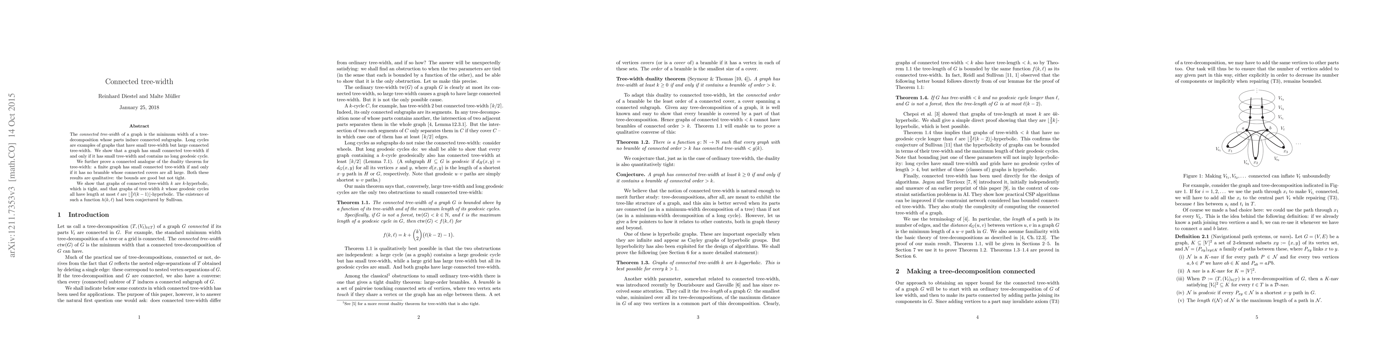 This paper explores the concept of connected tree-width, demonstrating that a graph has small connected tree-width if and only if it has small tree-width and no long geodesic cycles. It also establishes a duality theorem for connected tree-width and proves that graphs with small connected tree-width are $k$-hyperbolic.