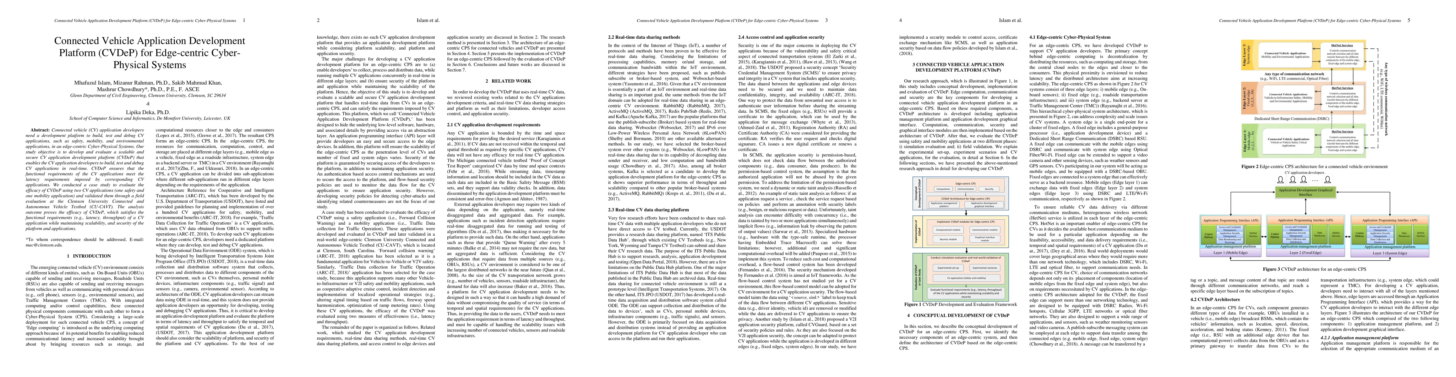 The paper presents the development and evaluation of CVDeP, a scalable and secure platform for connected vehicle applications in edge-centric Cyber-Physical Systems. The platform was validated through a case study and field evaluation at Clemson University, demonstrating its efficacy in meeting functional requirements and maintaining security.