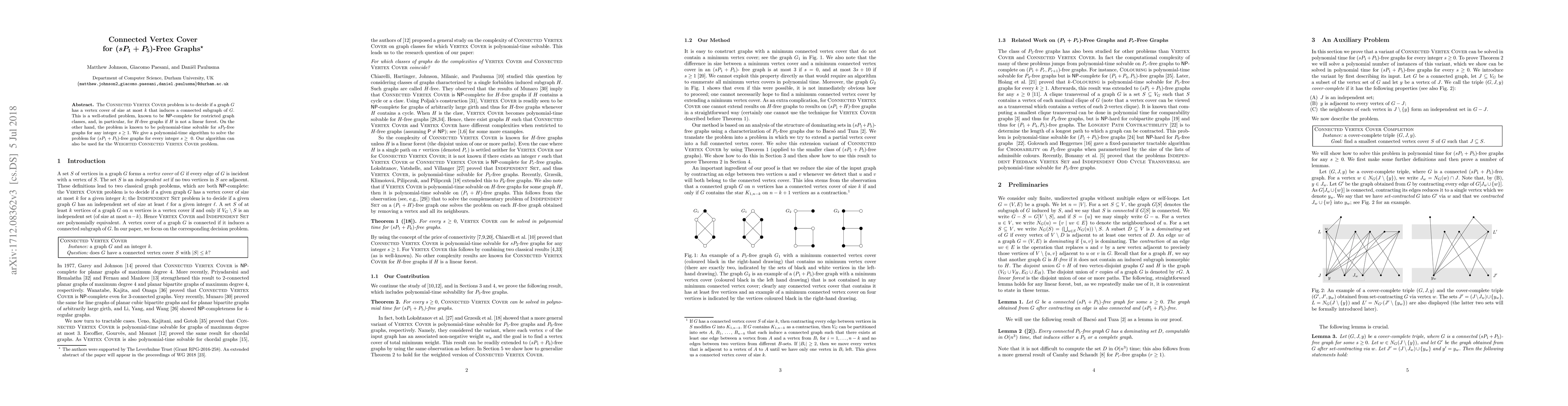 This paper addresses the Connected Vertex Cover problem for $(sP_1+P_5)$-free graphs, proving that it can be solved in polynomial time for any non-negative integer $s$. The problem remains NP-complete for most $H$-free graphs unless $H$ is a linear forest.