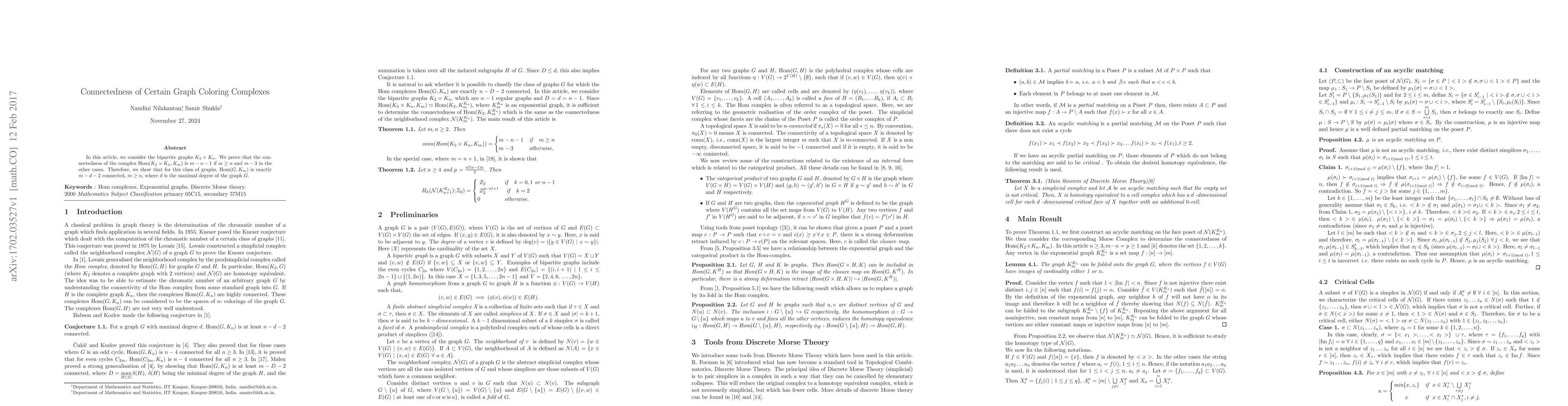 In this article, we consider the bipartite graphs $K_2 \times K_n$. We prove that the connectedness of the complex $\displaystyle \text{Hom}(K_2\times K_{n}, K_m) $ is $m-n-1$ if $m \geq n$ and $m-3$ in the other cases. Therefore, we show that for this class of graphs, $\text{Hom} (G, K_m)$ is exactly $m-d-2$ connected, $m \geq n$, where $d$ is the maximal degree of the graph $G$.