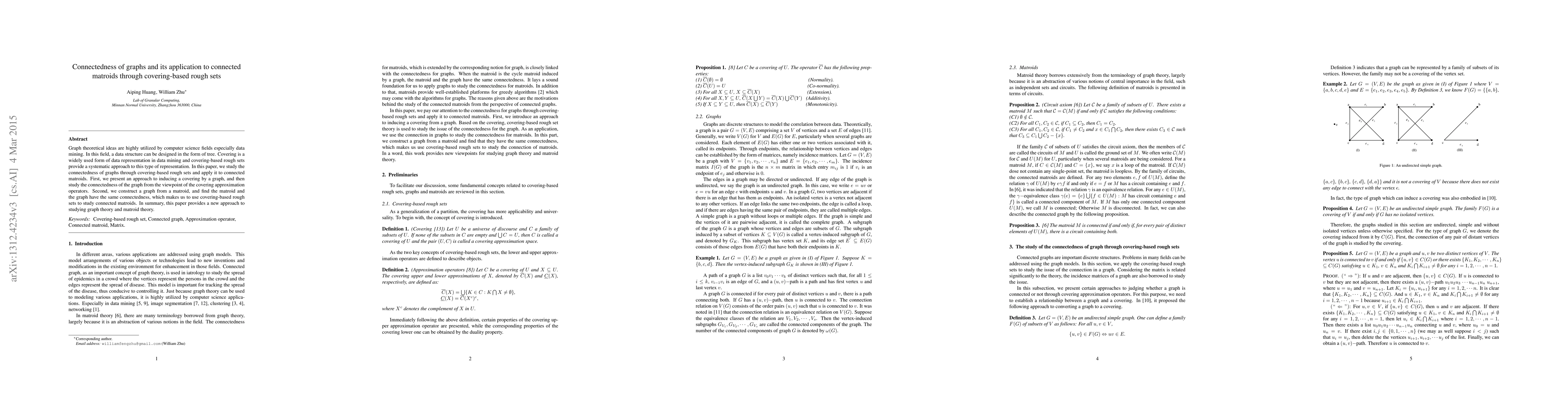 Graph theoretical ideas are highly utilized by computer science fields especially data mining. In this field, a data structure can be designed in the form of tree. Covering is a widely used form of data representation in data mining and covering-based rough sets provide a systematic approach to this type of representation. In this paper, we study the connectedness of graphs through covering-based rough sets and apply it to connected matroids. First, we present an approach to inducing a covering by a graph, and then study the connectedness of the graph from the viewpoint of the covering approximation operators. Second, we construct a graph from a matroid, and find the matroid and the graph have the same connectedness, which makes us to use covering-based rough sets to study connected matroids. In summary, this paper provides a new approach to studying graph theory and matroid theory.