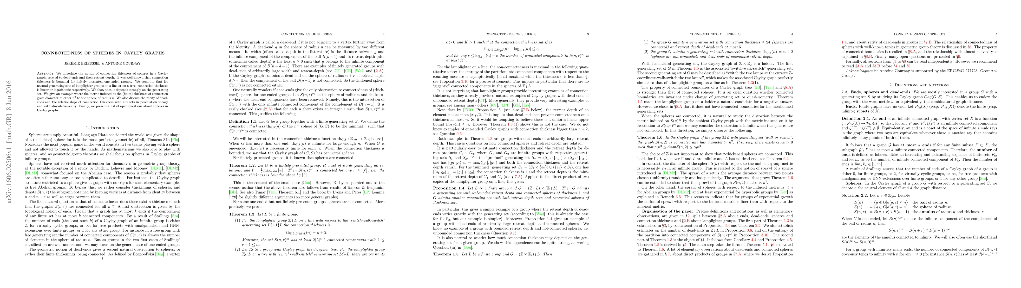 We introduce the notion of connection thickness of spheres in a Cayley graph, related to dead-ends and their retreat depth. It was well-known that connection thickness is bounded for finitely presented one-ended groups. We compute that for natural generating sets of lamplighter groups on a line or on a tree, connection thickness is linear or logarithmic respectively. We show that it depends strongly on the generating set. We give an example where the metric induced at the (finite) thickness of connection gives diameter of order $n^2$ to the sphere of radius $n$. We also discuss the rarity of dead-ends and the relationships of connection thickness with cut sets in percolation theory and with almost-convexity. Finally, we present a list of open questions about spheres in Cayley graphs.