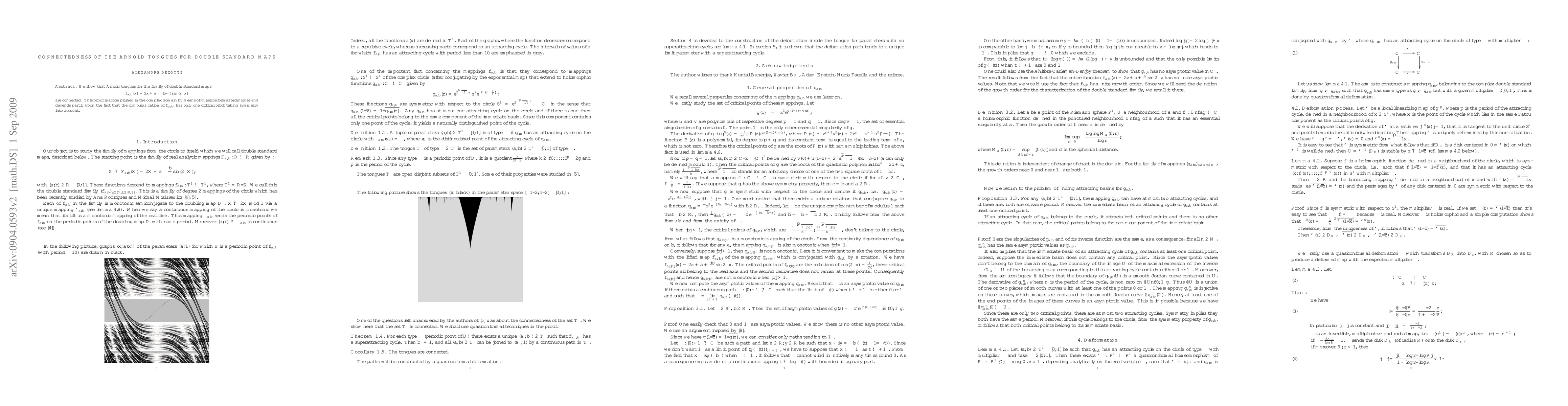 The research demonstrates that the Arnold tongues of double standard maps are connected using quasiconformal techniques in the complex domain, leveraging the single critical point of the complexified function. This connectivity is established through symmetry considerations.