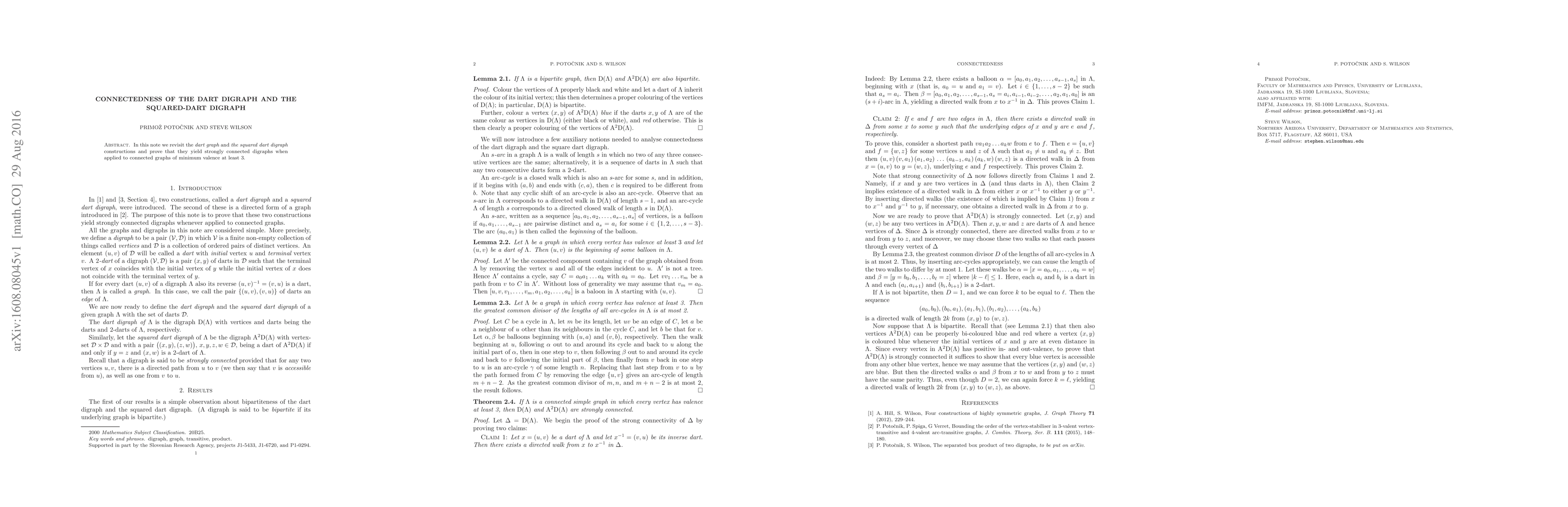 Researchers prove that applying certain graph constructions to connected graphs with minimum valence 3 yields strongly connected digraphs, exploring the dart digraph and squared-dart digraph.
