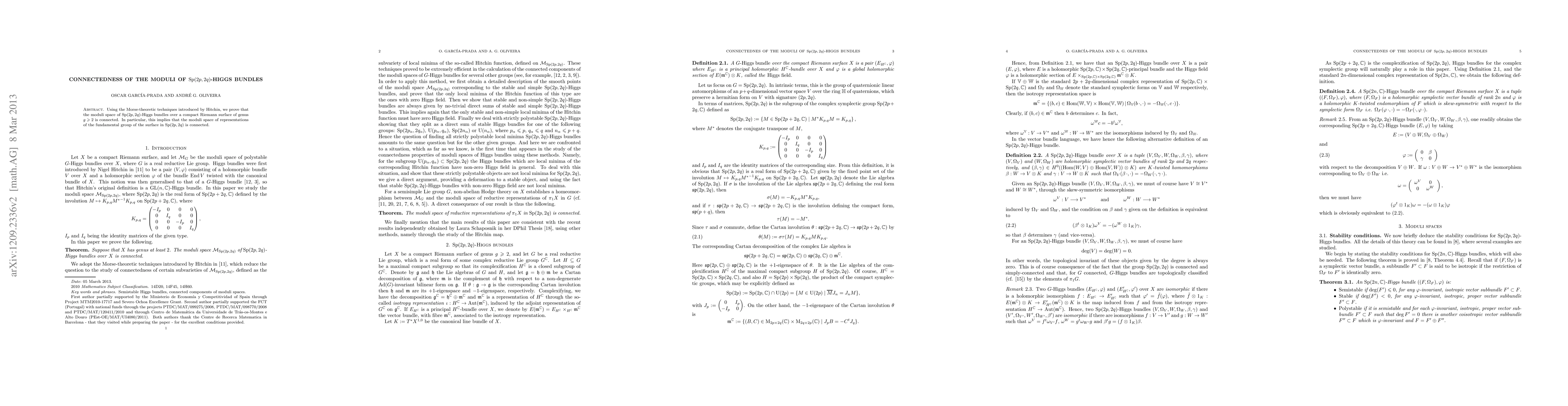 This paper proves the connectedness of the moduli space of $\Sp(2p,2q)$-Higgs bundles over a compact Riemann surface using Morse-theoretic techniques, implying the connected nature of the corresponding representation space of the surface's fundamental group.