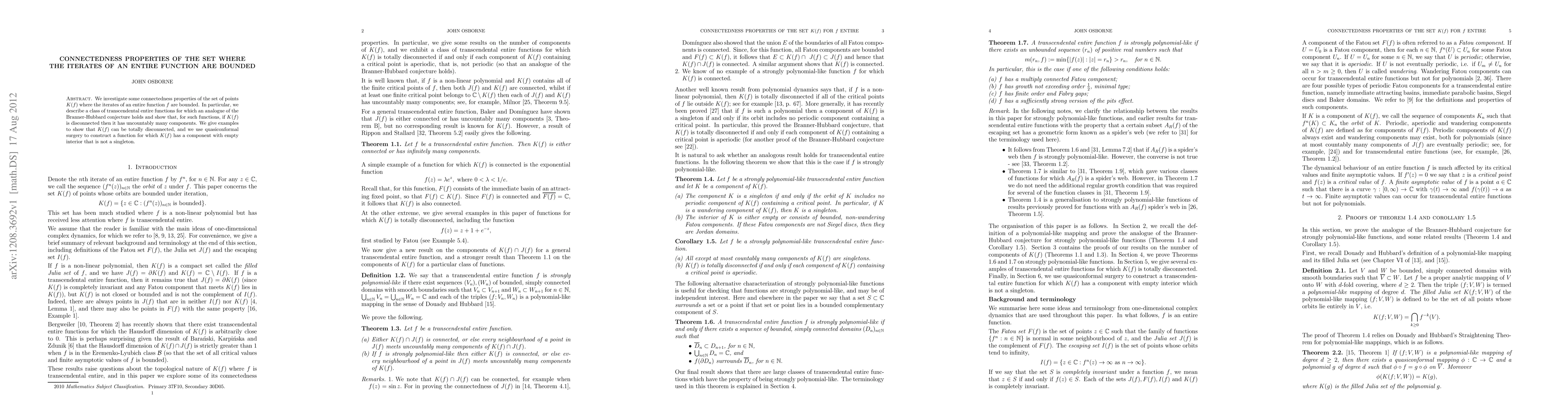 This research explores the connectedness of the set K(f) where iterates of entire functions f are bounded. It identifies a class of functions where an analogue of the Branner-Hubbard conjecture applies, proving K(f) has uncountably many components if disconnected. The study also demonstrates K(f) can be totally disconnected and constructs a function with K(f) containing a non-singleton component of empty interior using quasiconformal surgery.