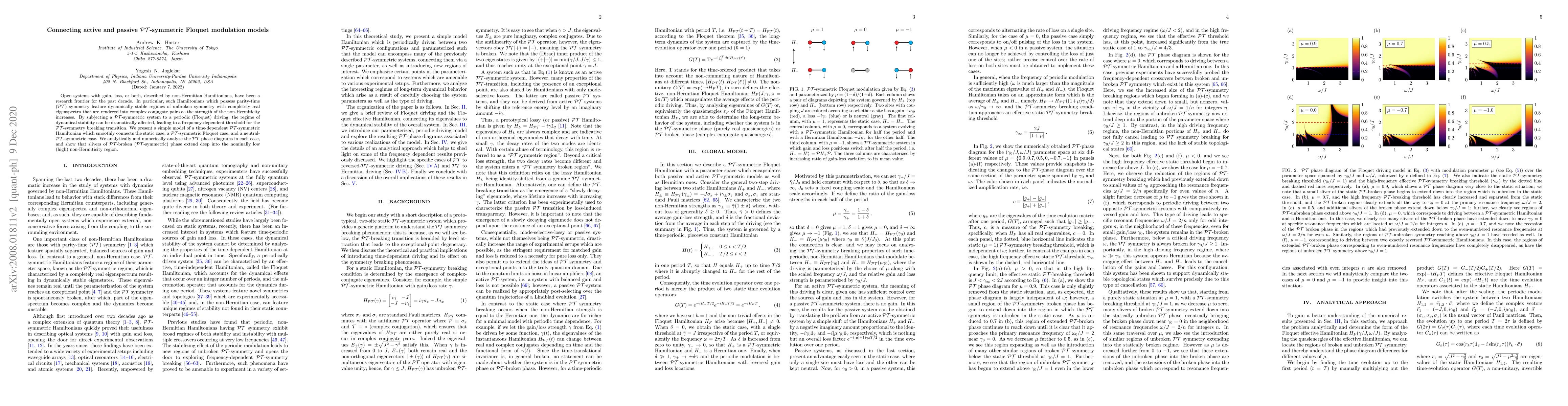 Open systems with gain, loss, or both, described by non-Hermitian Hamiltonians, have been a research frontier for the past decade. In particular, such Hamiltonians which possess parity-time ($\mathcal{PT}$) symmetry feature dynamically stable regimes of unbroken symmetry with completely real eigenspectra that are rendered into complex conjugate pairs as the strength of the non-Hermiticity increases. By subjecting a $\mathcal{PT}$-symmetric system to a periodic (Floquet) driving, the regime of dynamical stability can be dramatically affected, leading to a frequency-dependent threshold for the $\mathcal{PT}$-symmetry breaking transition. We present a simple model of a time-dependent $\mathcal{PT}$-symmetric Hamiltonian which smoothly connects the static case, a $\mathcal{PT}$-symmetric Floquet case, and a neutral-$\mathcal{PT}$-symmetric case. We analytically and numerically analyze the $\mathcal{PT}$ phase diagrams in each case, and show that slivers of $\mathcal{PT}$-broken ($\mathcal{PT}$-symmetric) phase extend deep into the nominally low (high) non-Hermiticity region.