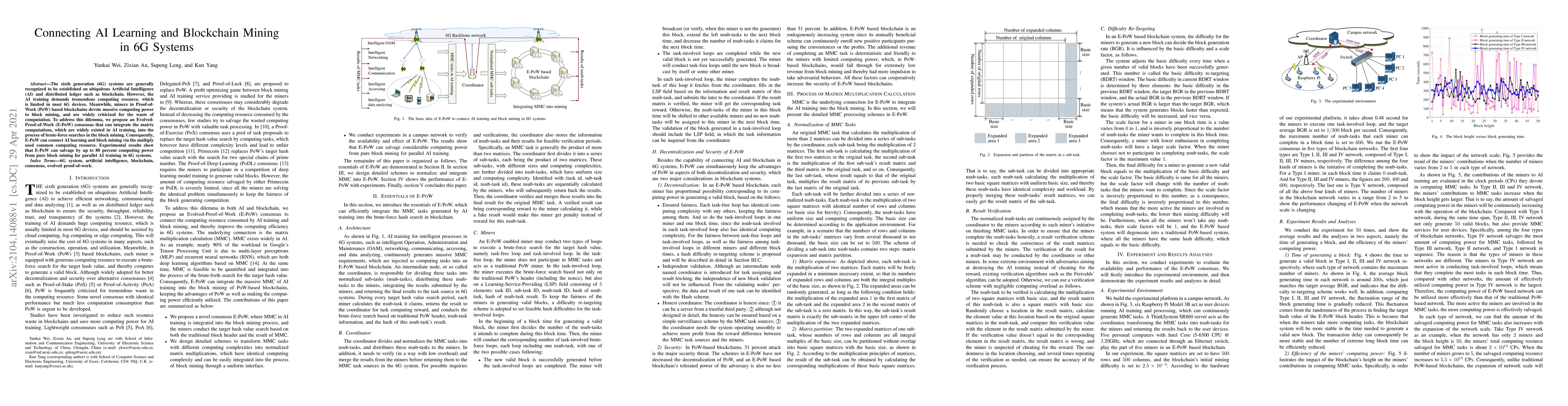 The sixth generation (6G) systems are generally recognized to be established on ubiquitous Artificial Intelligence (AI) and distributed ledger such as blockchain. However, the AI training demands tremendous computing resource, which is limited in most 6G devices. Meanwhile, miners in Proof-of-Work (PoW) based blockchains devote massive computing power to block mining, and are widely criticized for the waste of computation. To address this dilemma, we propose an Evolved-Proof-of-Work (E-PoW) consensus that can integrate the matrix computations, which are widely existed in AI training, into the process of brute-force searches in the block mining. Consequently, E-PoW can connect AI learning and block mining via the multiply used common computing resource. Experimental results show that E-PoW can salvage by up to 80 percent computing power from pure block mining for parallel AI training in 6G systems.
