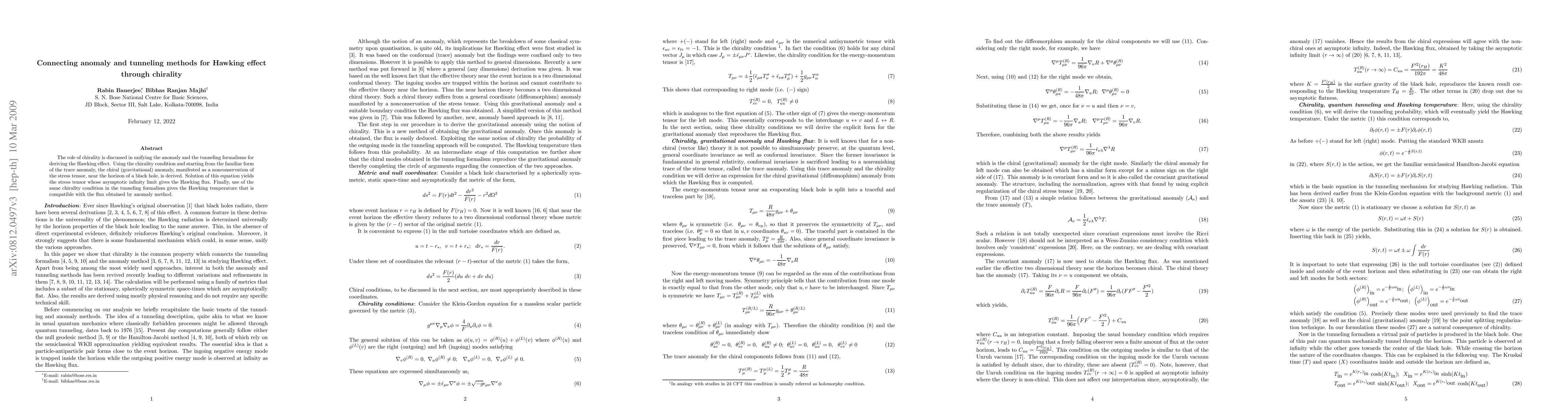 This paper unifies the anomaly and tunneling formalisms for the Hawking effect by leveraging chirality, deriving the Hawking flux from the chiral gravitational anomaly and the Hawking temperature from the tunneling formalism, both of which are consistent.