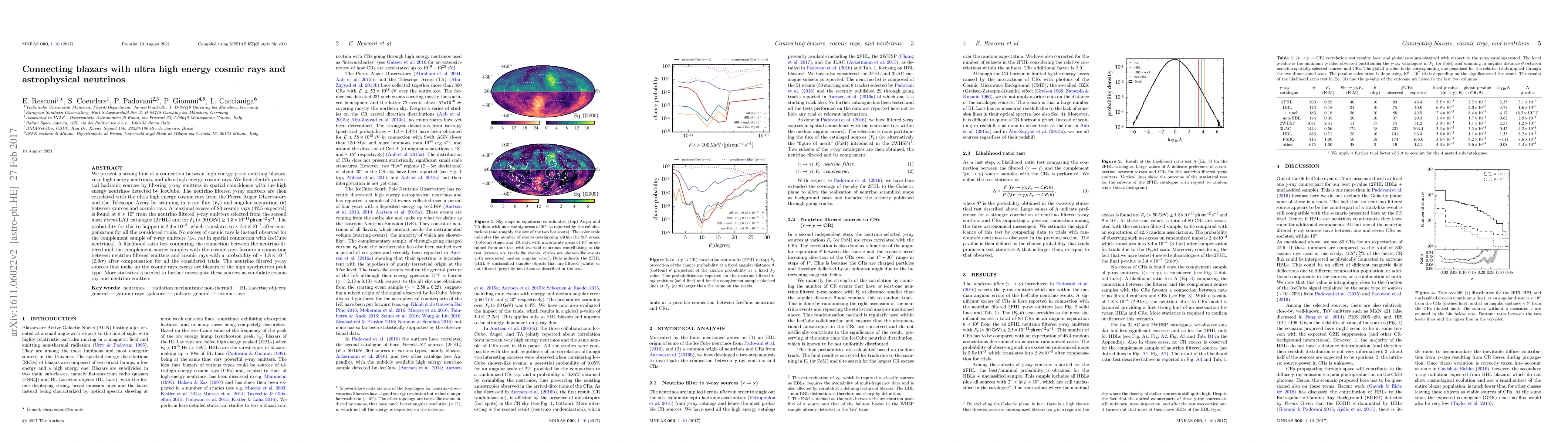 This paper suggests a potential link between high-energy gamma-ray emitting blazars, ultra-high energy cosmic rays, and astrophysical neutrinos. The study finds a significant excess of cosmic rays near neutrino-filtered gamma-ray sources, supporting the idea that these blazars may be sources of both cosmic rays and neutrinos.