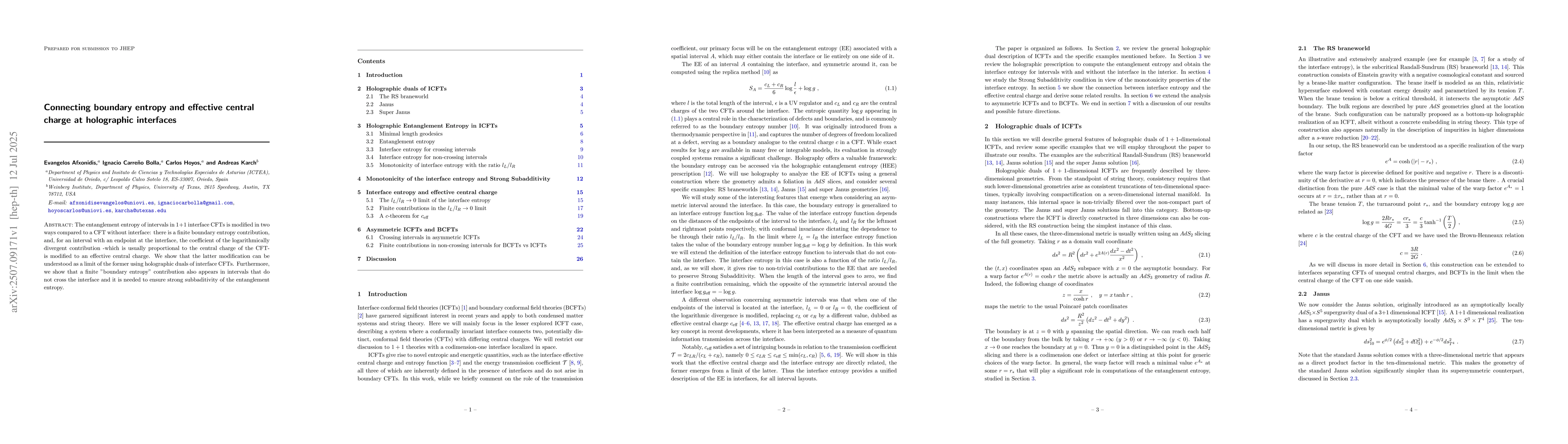 The work is novel in explicitly connecting the boundary entropy function to the effective central charge, demonstrating how these two features are not independent, and in identifying a finite scheme-independent interface entropy for ICFTs.